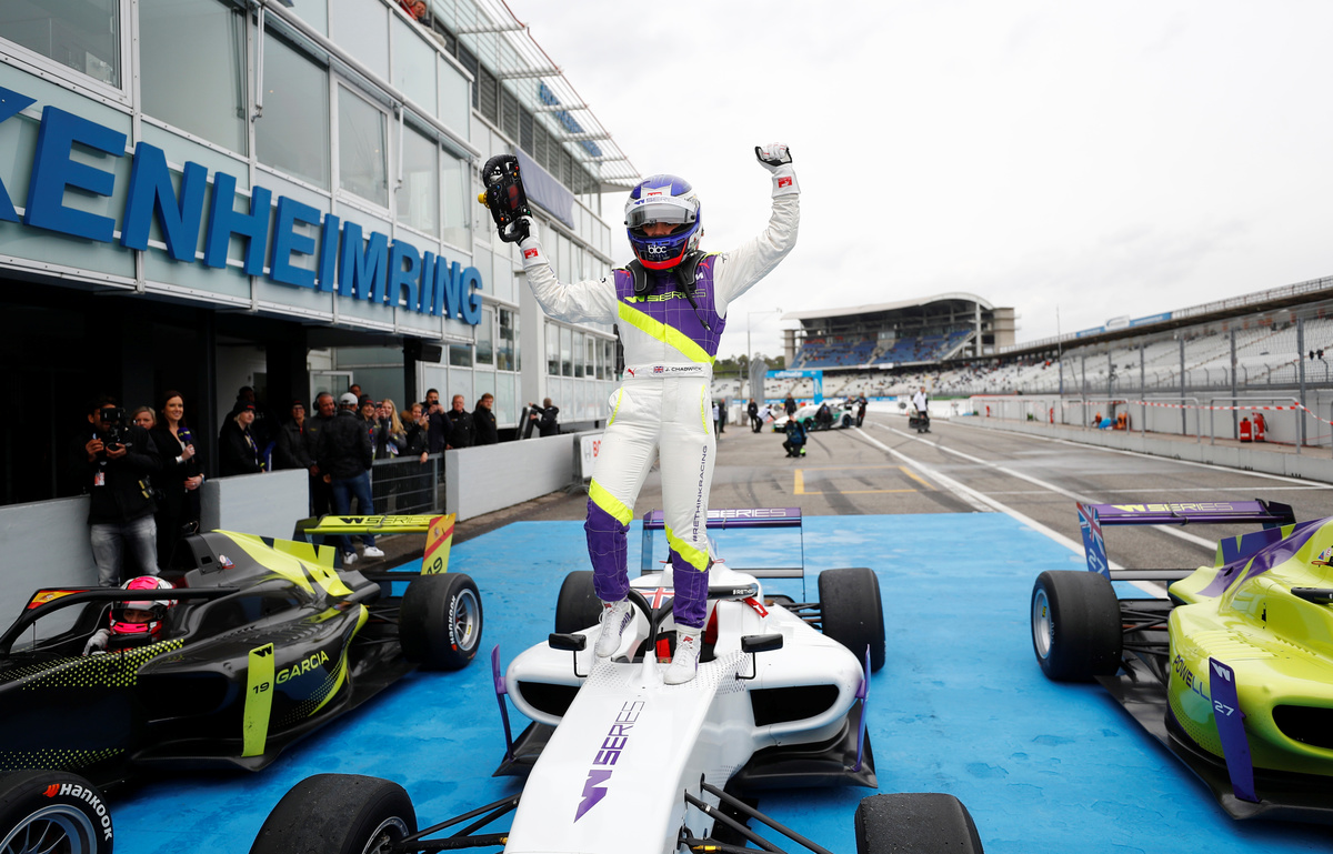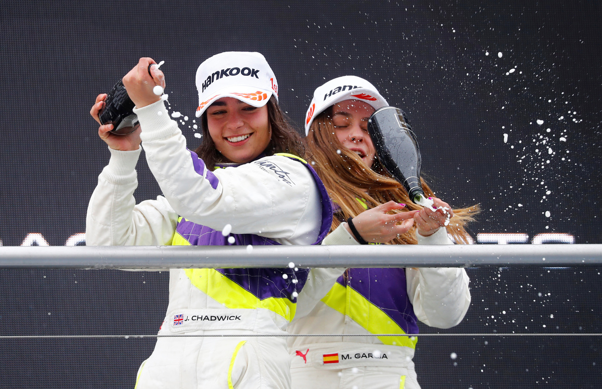 HOCKENHEIM, Germany (Reuters) - Britain's Jamie Chadwick stood on top of the podium as the first race winner in the new all-female W Series on Saturday with compatriot Alice Powell second at a damp and overcast Hockenheim.