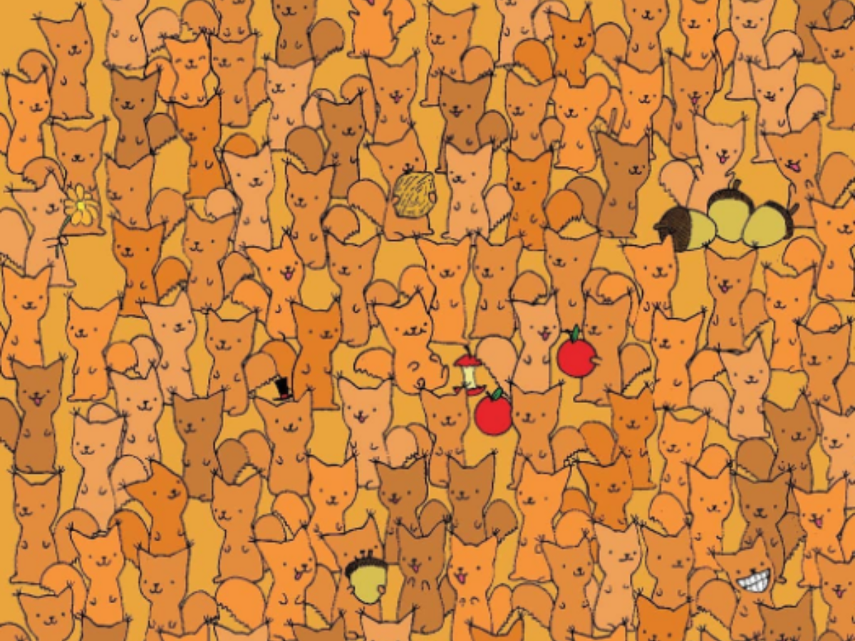 Given below is a picture filled with adorable squirrels. Your task is to find a cute mouse amongst these squirrels. What can make things confusing for you is that all creatures are in the same color. Further, there are some elements like fruits and nuts that can distract you from your mission. Lastly, we might just stop to admire how cute these squirrels are!