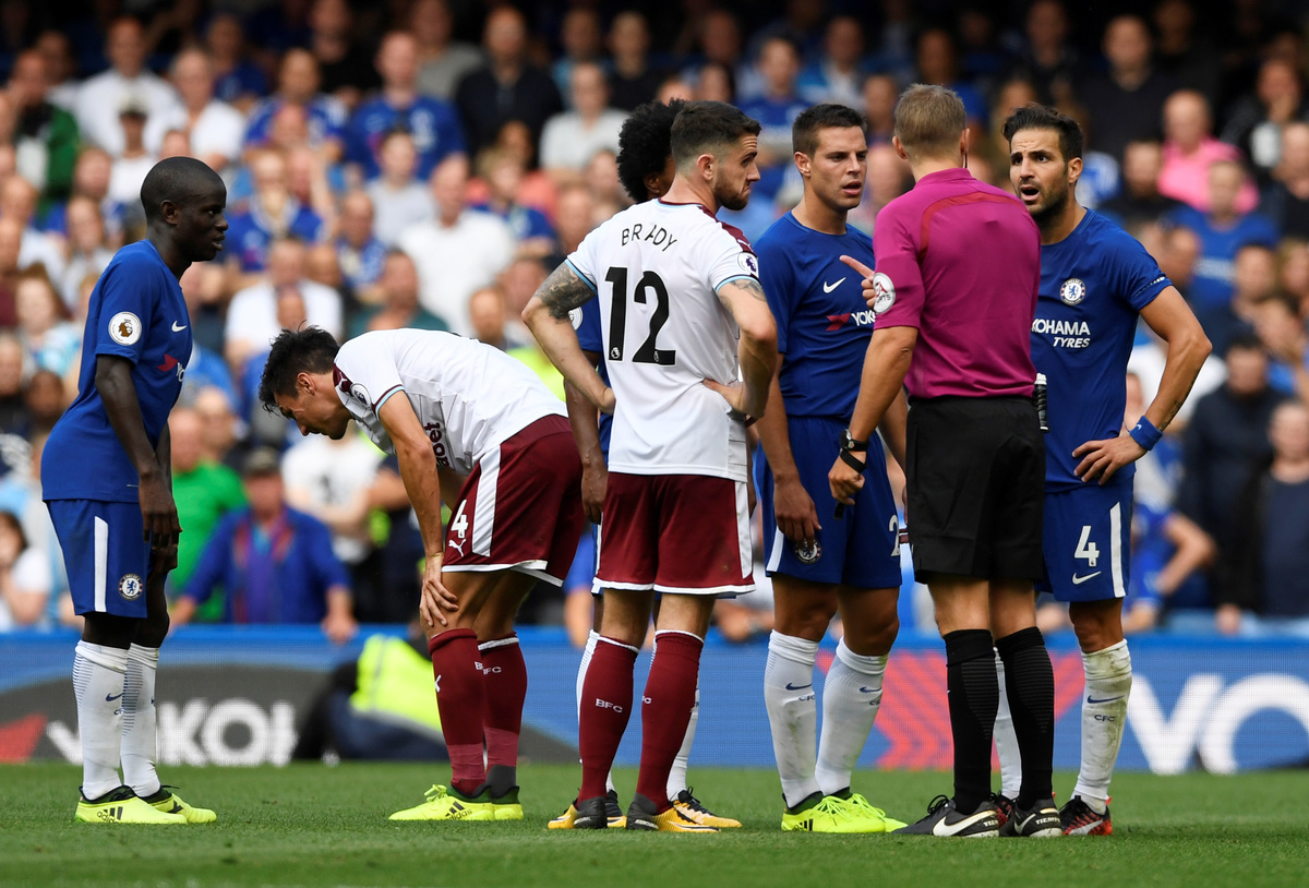 LONDON (Reuters) - Premier League champions Chelsea suffered an embarrassing home defeat on the first Saturday of the new season, having two men sent off as unfancied Burnley beat them 3-2 at Stamford Bridge.