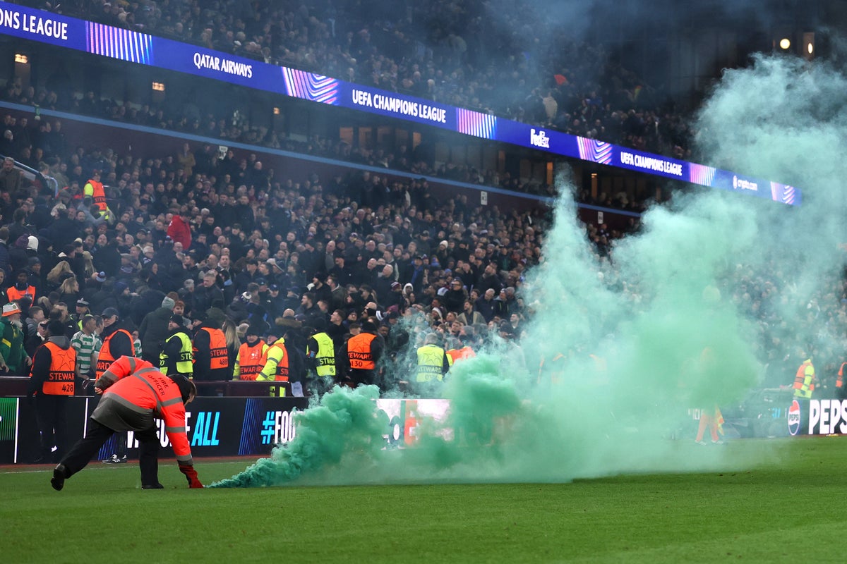 Uefa warned Celtic that supporters would be banned if there was a repeat of the incident within the next two years, and European football’s governing body may decide to take action after a green smoke bomb was thrown onto the pitch at Villa Park in the league phase finale.