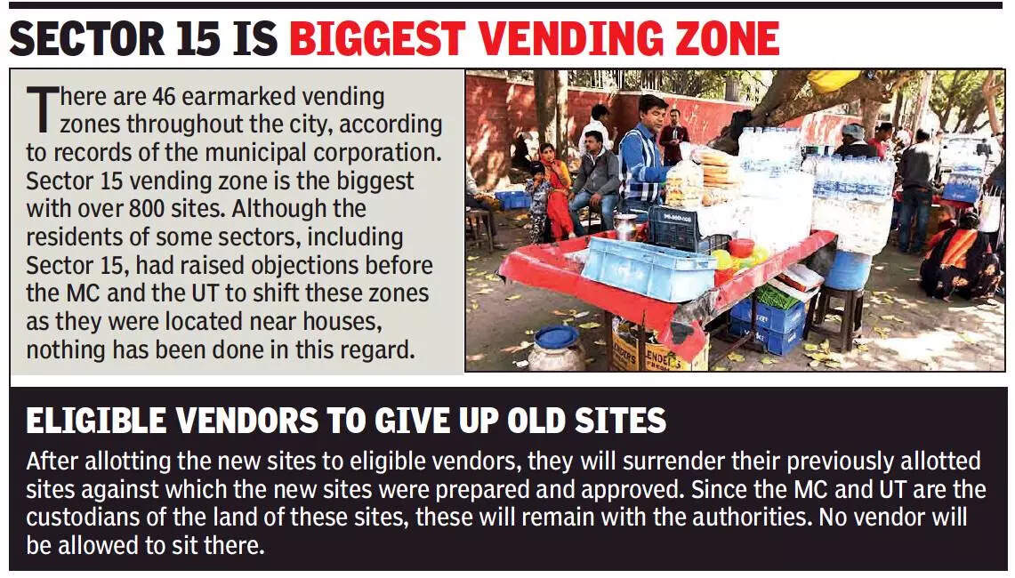 CHANDIGARH: The municipal corporation (MC) has prepared the layout plan of 15 new vending zones to resettle 1,100 registered street vendors by shifting them from their existing sites to the new commercially viable areas.