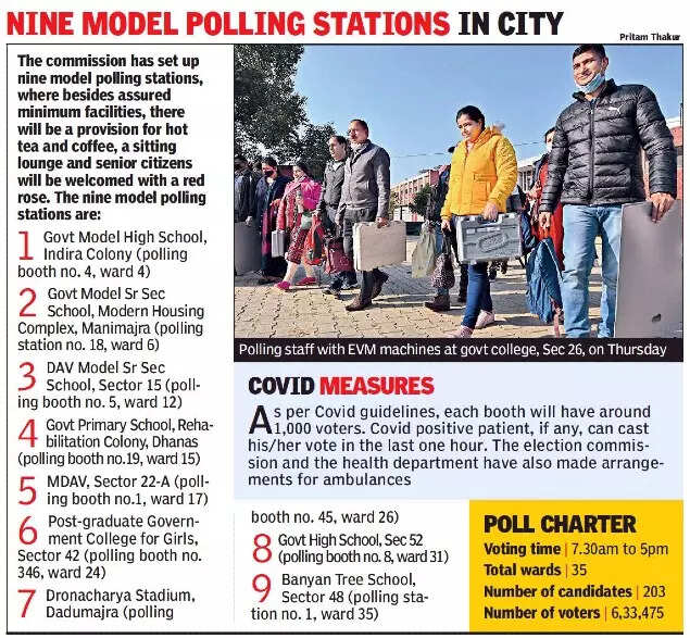 CHANDIGARH: A total of 6.33 lakh voters will decide the fate of 203 candidates of BJP, Congress, AAP, SAD, BSP and Independents as 35-ward municipal corporation goes to polls on Friday.
