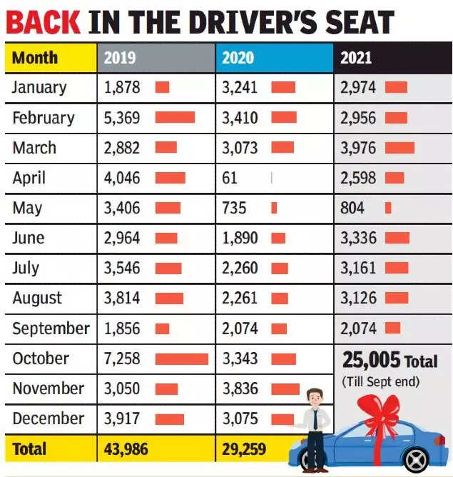 CHANDIGARH: Demand for cars and bikes has bounced back from the pandemic slump in the city, with vehicle registration increasing by 31.57% in the first nine months of this year as compared to the same period last year.