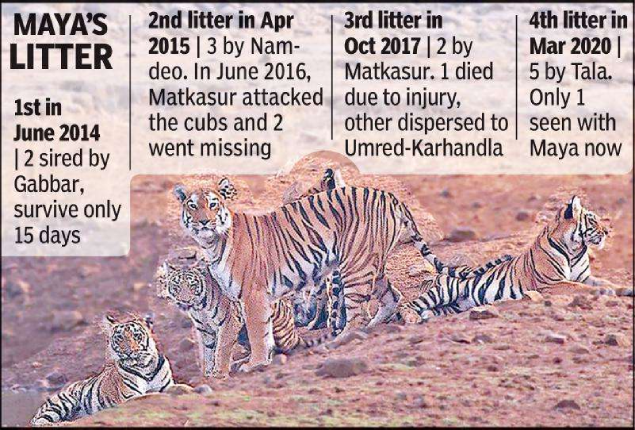 Wildlife Institute of India (WII) tiger scientist Bilal Habib says in a high-tiger density area like Tadoba “cubs disperse early”. “This was the case with other tigresses like Sonam and Chhoti Tara. In April, our team had recorded four cubs during estimation. There are several male tigers in Tadoba which kill cubs for mating rights with females. Maya’s cub Surya from a previous litter was forced out in 2019 when it was less than two years old. Similarly, two tigresses from Kolsa and Tadoba had dispersed to Paoni range of Karhandla. I feel there are less chances that Maya’s three cubs are dead.”