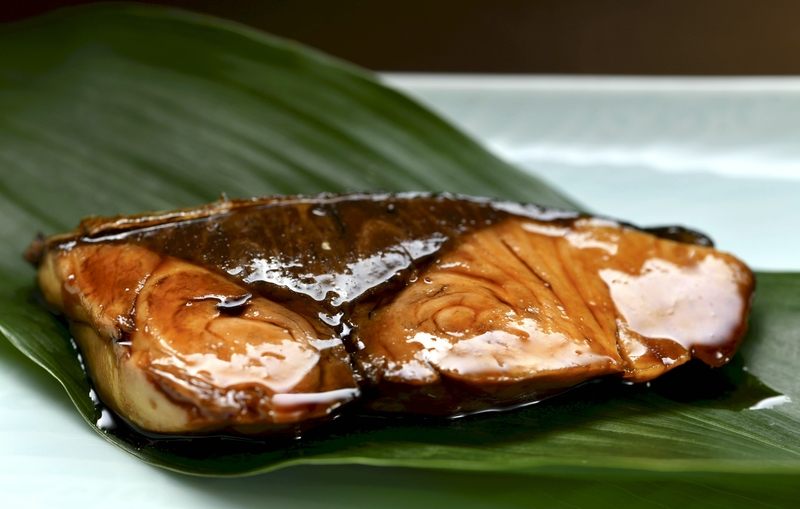 3. Wipe the pan with a paper towel to remove excess fat. Add teriyaki sauce and shake the pan while simmering to allow the sauce to coat the fish as the mixture thickens.
