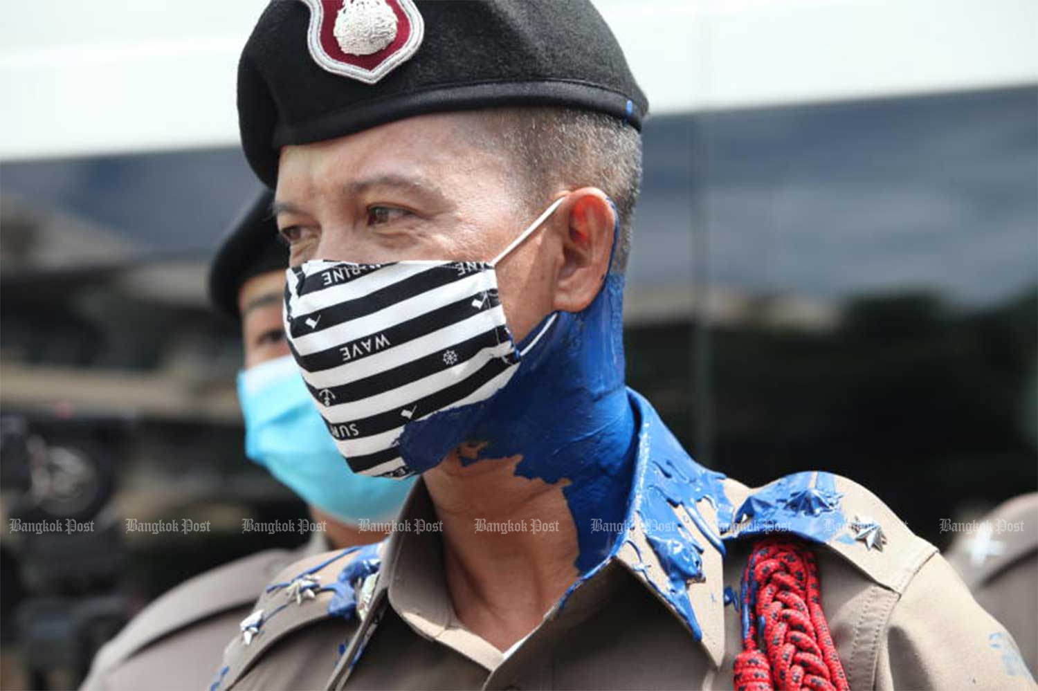 Angry supporters removed the barriers. Singer-songwriter Chai-amorn Kaewwiboonpan, known as Ammy of the Bottom Blues band, threw a container of blue paint at police, soaking some of them.