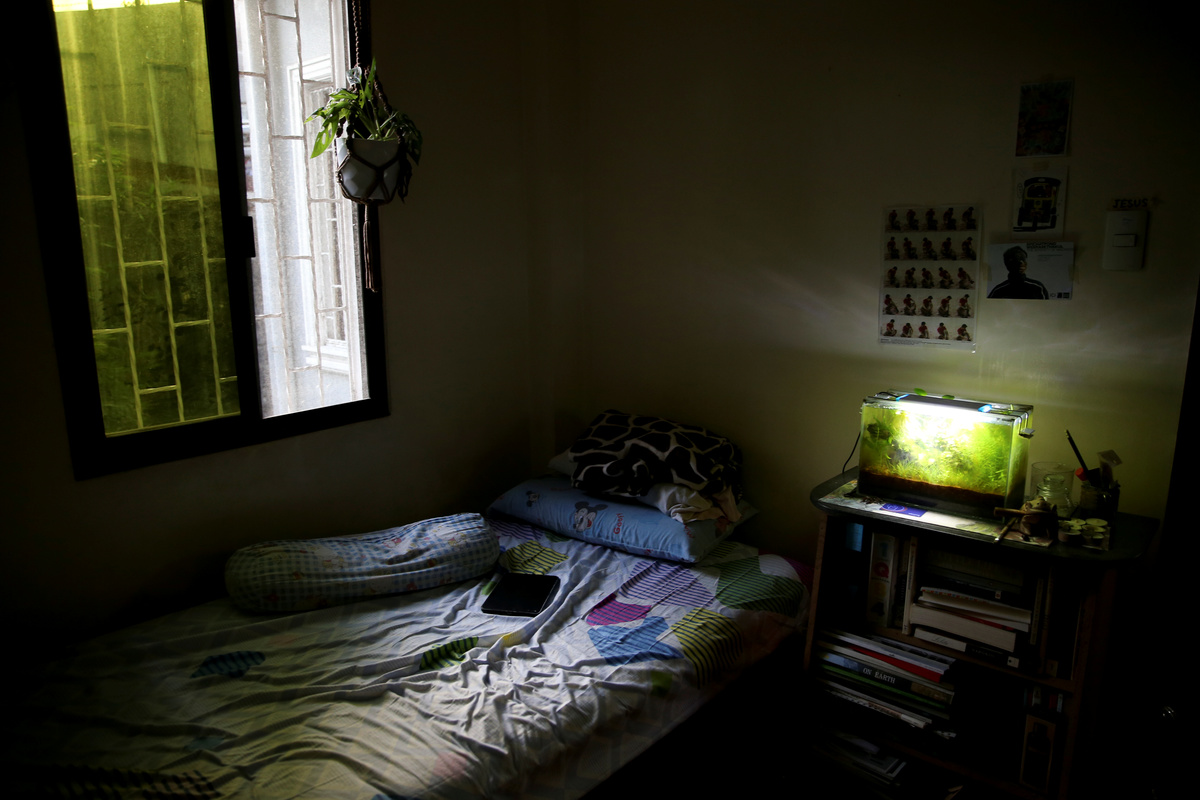 An aquarium glows in the bedroom of Oliver Emocling, 23, who works for a magazine, at his family home in Malabon City, Metro Manila, Philippines, October 15, 2018. REUTERS/Eloisa Lopez