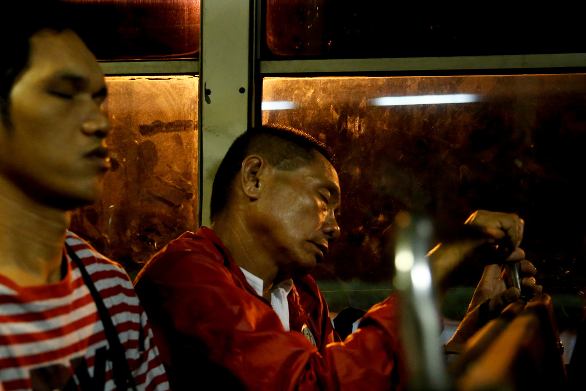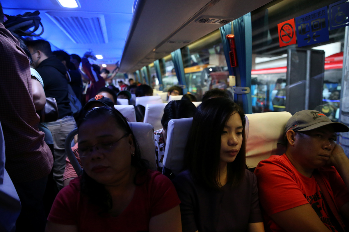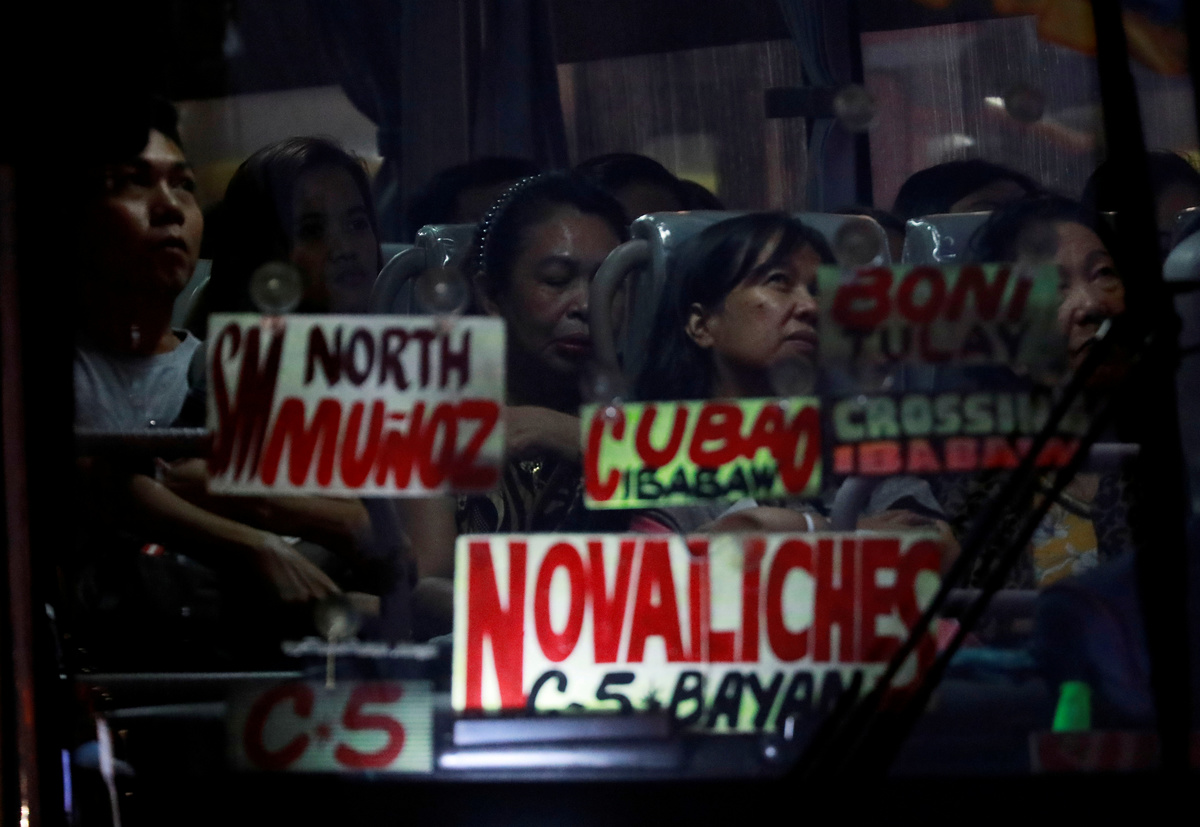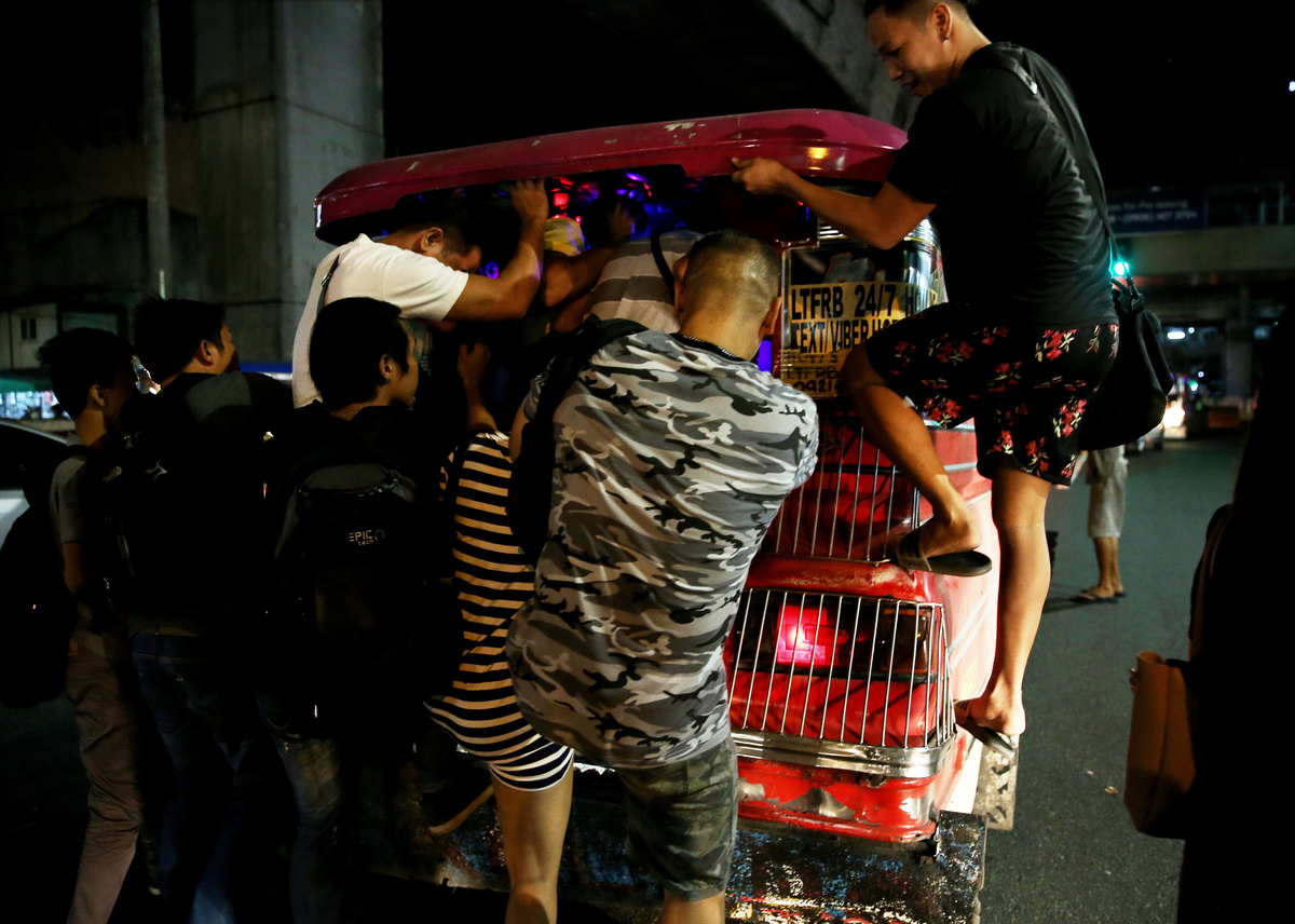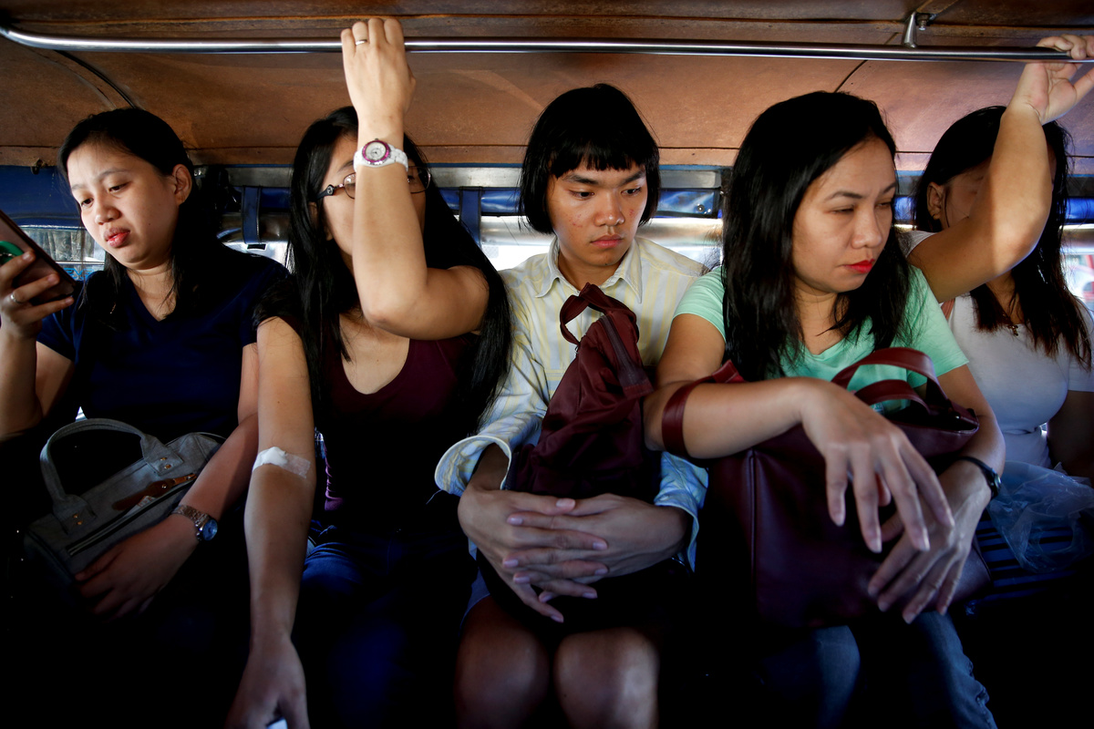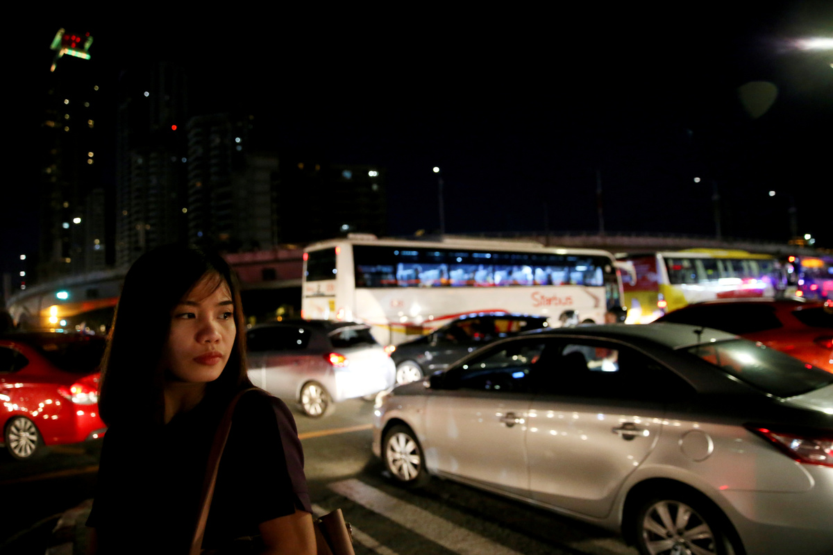 Commuters watch television inside a bus stuck in traffic along EDSA highway in Makati City, Philippines, February 12, 2019. REUTERS/Eloisa Lopez Oliver Emocling, 23, who works for a magazine, waits for a jeepney in Caloocan City, Philippines, November 29, 2018. Emocling travels about 16 kilometres to get to work. "I think it's really a struggle, especially here in Manila. Most jobs, especially in our line of work are in Makati City, Bonifacio Global City, and Pasig City, so you have to go out of your way to travel for at least an hour to get to work." REUTERS/Eloisa Lopez Commuters push their way in to a jeepney in Cubao, Quezon City, Philippines, December 3, 2018. REUTERS/Eloisa Lopez Oliver Emocling, 23, who works for a magazine, walks to the train station in Caloocan City, Philippines, October 15, 2018. On weekdays, especially at rush hour, it takes him almost two hours to get to work. "I've accepted that this is the reality of having to work in Makati, and live in Malabon. This is how it is, no matter what I do, no matter what means of transportation I take." REUTERS/Eloisa Lopez Oliver Emocling, 23, who works for a magazine, waters his plants on the rooftop of his family home in Malabon City, Metro Manila, Philippines, October 15, 2018. "I like plants so I water them every morning before I take a bath. For me it's a ritual to look after them every morning," Emocling said. REUTERS/Eloisa Lopez Janice Sarad, 22, who works for a bank, looks at traffic congestion along EDSA road, in Makati City, Philippines, December 3, 2018. REUTERS/Eloisa LopezJanice Sarad, 22, who works for a bank, walks down a street to her home in Antipolo City, Rizal province, in Philippines, December 3, 2018. Sarad usually arrives home between 20:30 to 21:30. "My boss knows how far away my house is. When I get to work late, he just tells me to leave my home 30 minutes earlier to compensate. I really want to be transferred to a different location, somewhere closer to my home," she said. REUTERS/Eloisa Lopez Ferdinand Tan, 53, wealth coach and motivational speaker, observes his daughter who is homeschooled in Cainta City, Rizal province, Philippines, November 30, 2018. Tan and his wife decided to homeschool their children to maximise their hours every day. "I dont want them to spend so much unproductive time travelling every single day. That's time away from the family. And by the time they get home, they're already tired." REUTERS/Eloisa Lopez Alejandro Galasao, 58, street sweeper, sleeps on a bus in San Jose Del Monte City, Bulacan province, Philippines, November 15, 2018. Galasao usually sleeps on the bus going to work, as he only gets four to five hours of sleep each day. "To be honest, there's really not enough time to sleep. The earliest time I get to sleep is 20:00, sometimes 21:00 and then I have to wake up at 01:00" REUTERS/Eloisa Lopez Alejandro Galasao, 58, street sweeper, prepares to alight a bus in Quezon City, Philippines, November 15, 2018. Even with the long travel hours, Galasao said he never tried finding work nearer to his home because he is certain he would not find any, considering his age. "I have no other options. This is the only job I know. Even if I find something else, I doubt I would earn any better." REUTERS/Eloisa Lopez Alejandro Galasao, 58, street sweeper, walks with his wife and their dogs outside their home in San Jose Del Monte City, Bulacan province, Philippines, November 14, 2018. Galasao moved to Bulacan, north of Manila, after their home in Quezon City was demolished by the government in 2003. REUTERS/Eloisa Lopez Alejandro Galasao, 58, street sweeper, pushes a cart with cleaning supplies at Quezon Avenue in Quezon City, Metro Manila, Philippines, November 14, 2018. Every day, Galasao sweeps trash and dirt off the roads in Quezon City, from six in the morning until two in the afternoon. REUTERS/Eloisa LopezAlejandro Galasao, 58, street sweeper, sweeps trash and dirt off Quezon Avenue in Quezon City, Metro Manila, Philippines, November 15, 2018. Galasao spends four to five hours travelling every day to get to his work in Quezon City. REUTERS/Eloisa Lopez Janice Sarad, 22, who works for a bank, queues for her company's free shuttle service going to the train station, in Taguig City, Philippines, December 3, 2018. When Sarad doesn't work overtime, she opts to take her company's free shuttle service to save money. "There's no money left for me to save. My salary goes to my sister's tuition fee, bills to pay at home, and my fare to go to work. There is nothing left for me," she said. REUTERS/Eloisa Lopez Janice Sarad, 22, who works for a bank, exits the Cubao MRT station in Quezon City, Philippines, December 3, 2018. Sarad sometimes takes the train to avoid the heavy traffic on the road. Trains to Metro Manila however are just as crowded as the traffic-congested roads, especially during rush hour. "It's really annoying how crowded it is sometimes. It becomes so smelly, so sweaty, you can even smell other people's breath," she said. REUTERS/Eloisa Lopez Alejandro Galasao, 58, street sweeper, eats breakfast with his wife in their home in San Jose Del Monte City, Bulacan province, Philippines, November 15, 2018. Galasao wakes up between 1:00-2:00 every day to prepare his food and clothes before going to work. REUTERS/Eloisa Lopez Janice Sarad, 22, who works for a bank, shows a photo of her office mates in her home in Antipolo City, Rizal province, in Philippines, December 3, 2018. Sarad studied to become a teacher but postponed applying for the licensure exam to earn money immediately after graduating in college. "I'm still going to take the exam but I'm not sure if I still want to be a teacher because the salary is much lower. I'm fine where I am at the bank. It's an easier job," she said. REUTERS/Eloisa Lopez Ferdinand Tan, 53, wealth coach and motivational speaker, signs his books on financial advice in his home in Cainta City, Rizal province, Philippines, November 30, 2018. When T