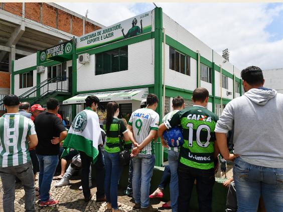 Hundreds of Chapecoense fans gathered at the club’s stadium in Chapecó in Brazil on Tuesday to mourn those killed in the crash.