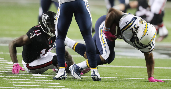 Atlanta got a big game from Julio Jones (174 yards) but was held to just three points in the second half. Perryman also had a key interception for the Chargers, and rookie Joey Bosa had two sacks.
