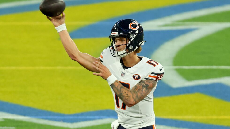 Bagent went 10-for-15 for 121 yards and threw an interception when there was miscommunication between receivers D.J. Moore and Darnell Mooney on the left flank and he threw the ball well short of Mooney. The Bears’ lone touchdown came on Darrynton Evans’ only carry of the half, an 11-yard run. It capped a drive that lasted 7:03, a slog the Chargers were happy to see while they nursed a 17-point lead.