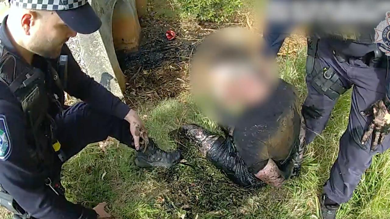 Two hours later, a man who allegedly fled the scene was tracked by police dogs to the stormwater drain 1.5km from the accident and taken into custody.