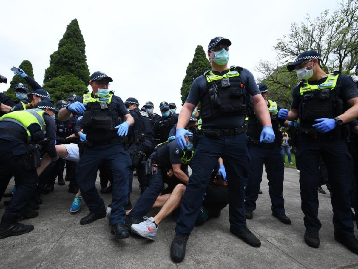 There were 16 people arrested during the hours-long stand-off, with hundreds of protesters rallying against Victoria's COVID-19 restrictions.