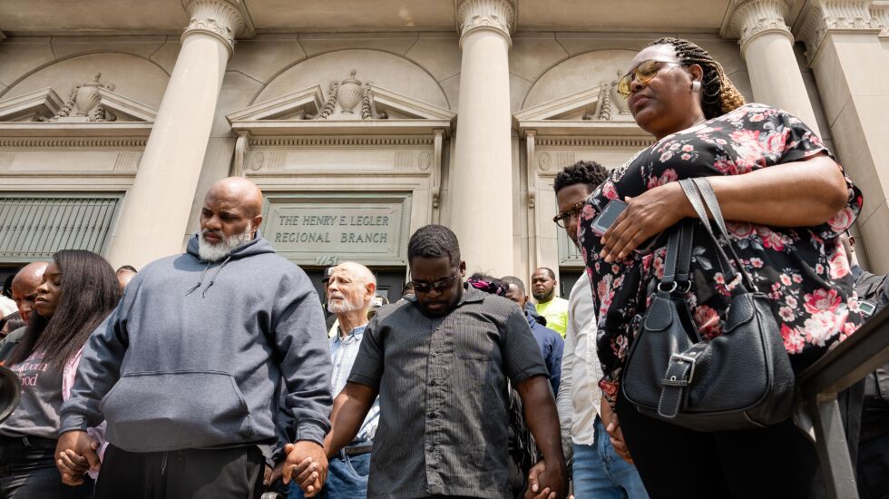 Members of a half-dozen community groups gathered on the library’s front steps to show solidarity and highlight efforts to tamp down bloodshed in a neighborhood that is perennially among the city’s most violent.