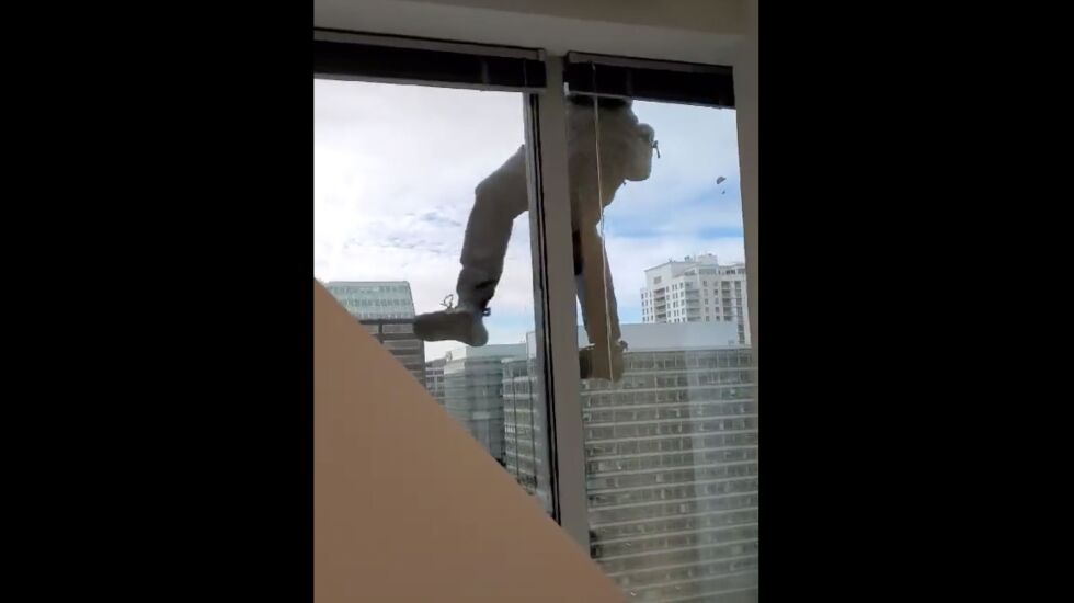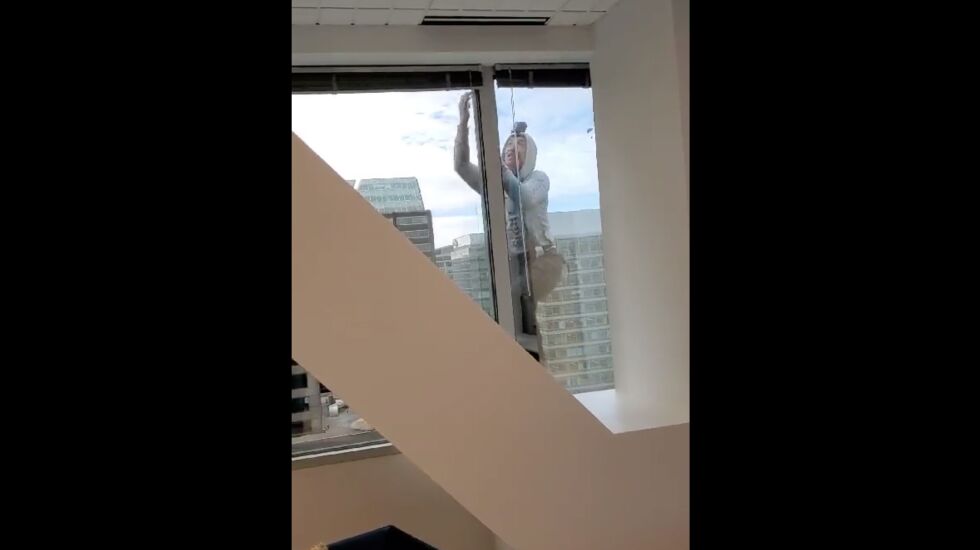 Veronica Mitchell, 26, who works at the Jamba Juice in the building, said she walked over to the window this morning when someone asked her if she had seen the climber.