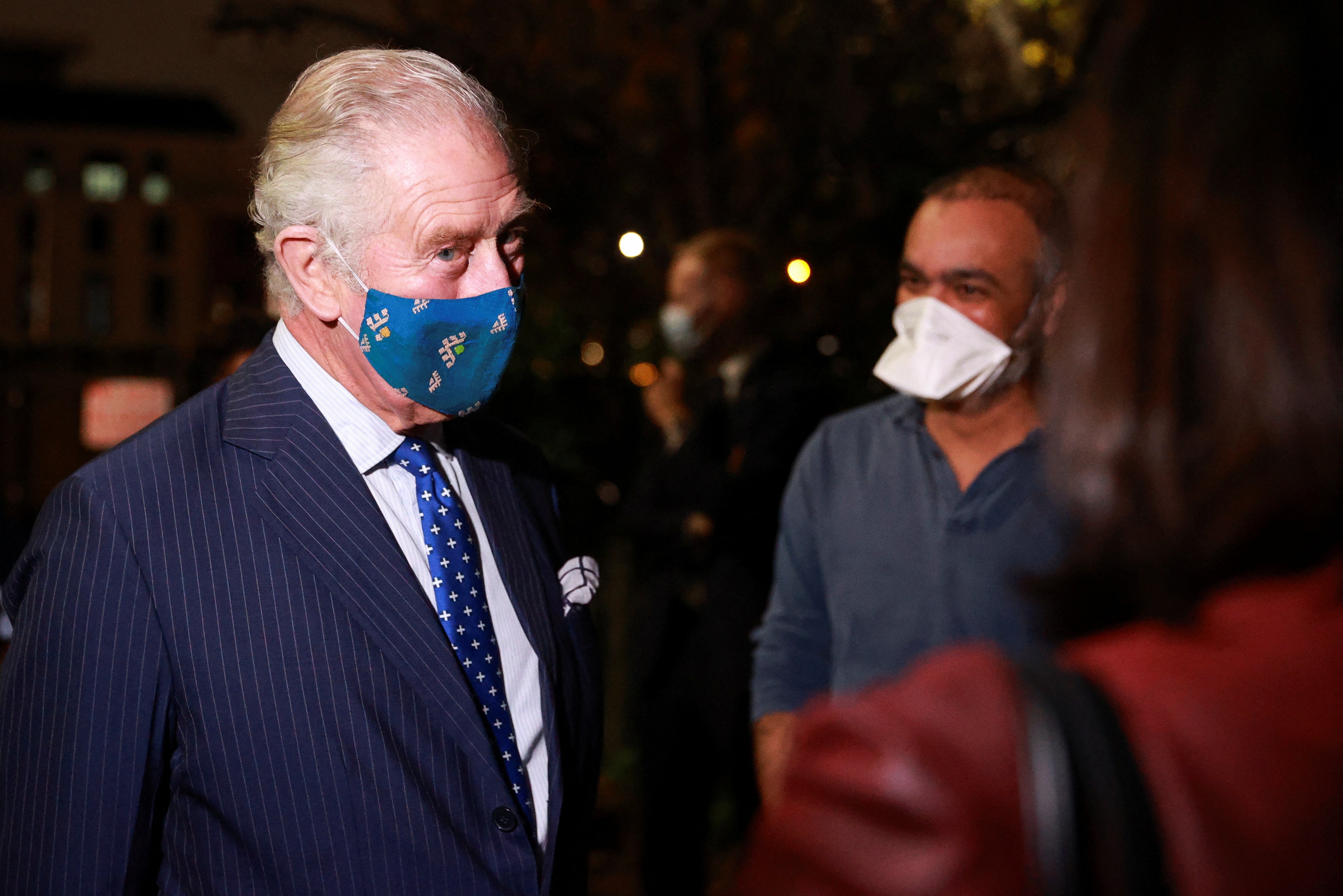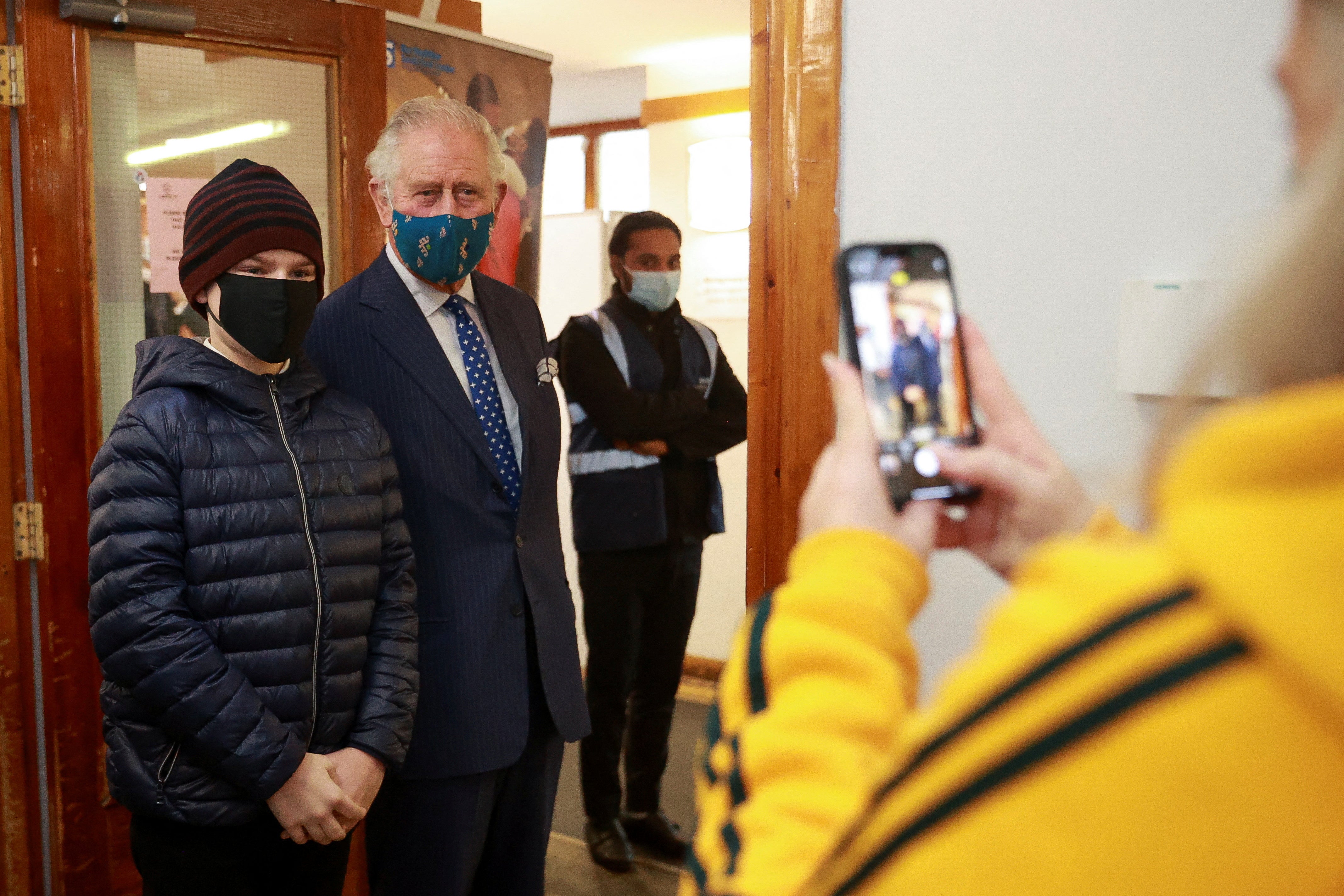 The masked prince watched some of the vaccinators – which included university medical students – deliver the booster jabs to those who waited patiently.