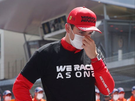 But Leclerc hit trouble on his way to the grid for Sunday’s race, and parked up in his Ferrari garage with his head in his hands.
