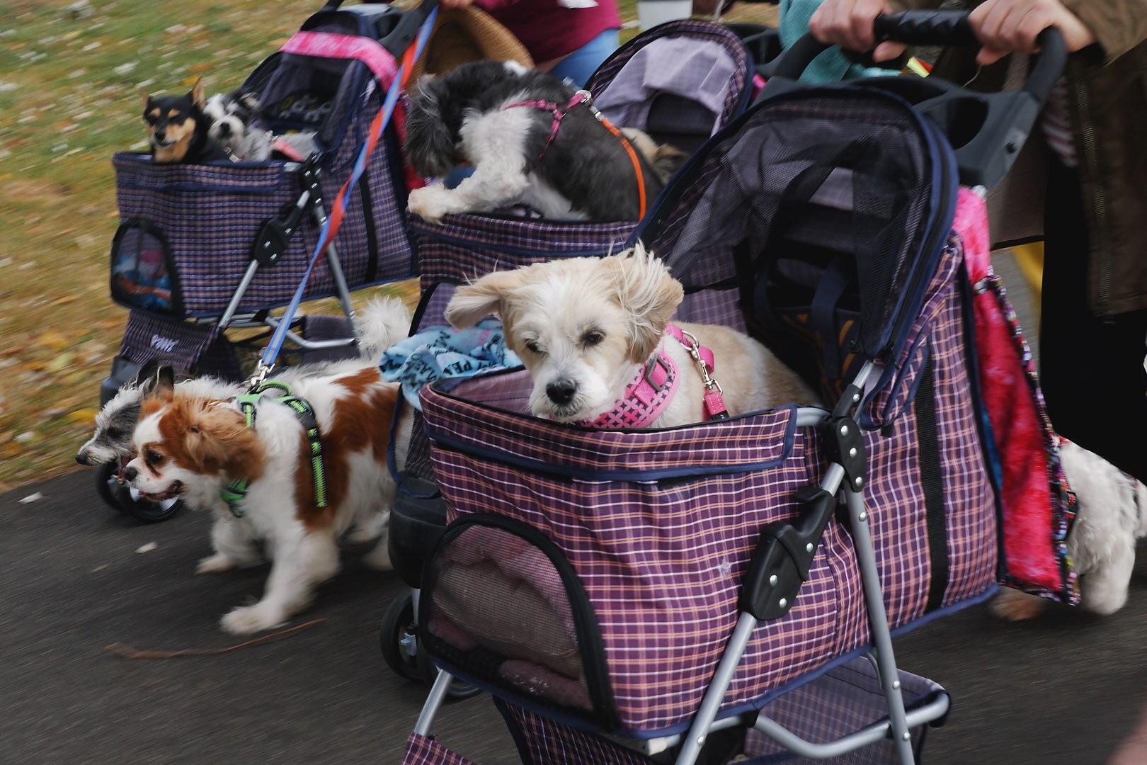 The prams are full of ratbaggy dogs. Rescue dogs, orphaned dogs, then a few more shuffling along on leads, their eccentric gaits and sideways tongues are survival badges.