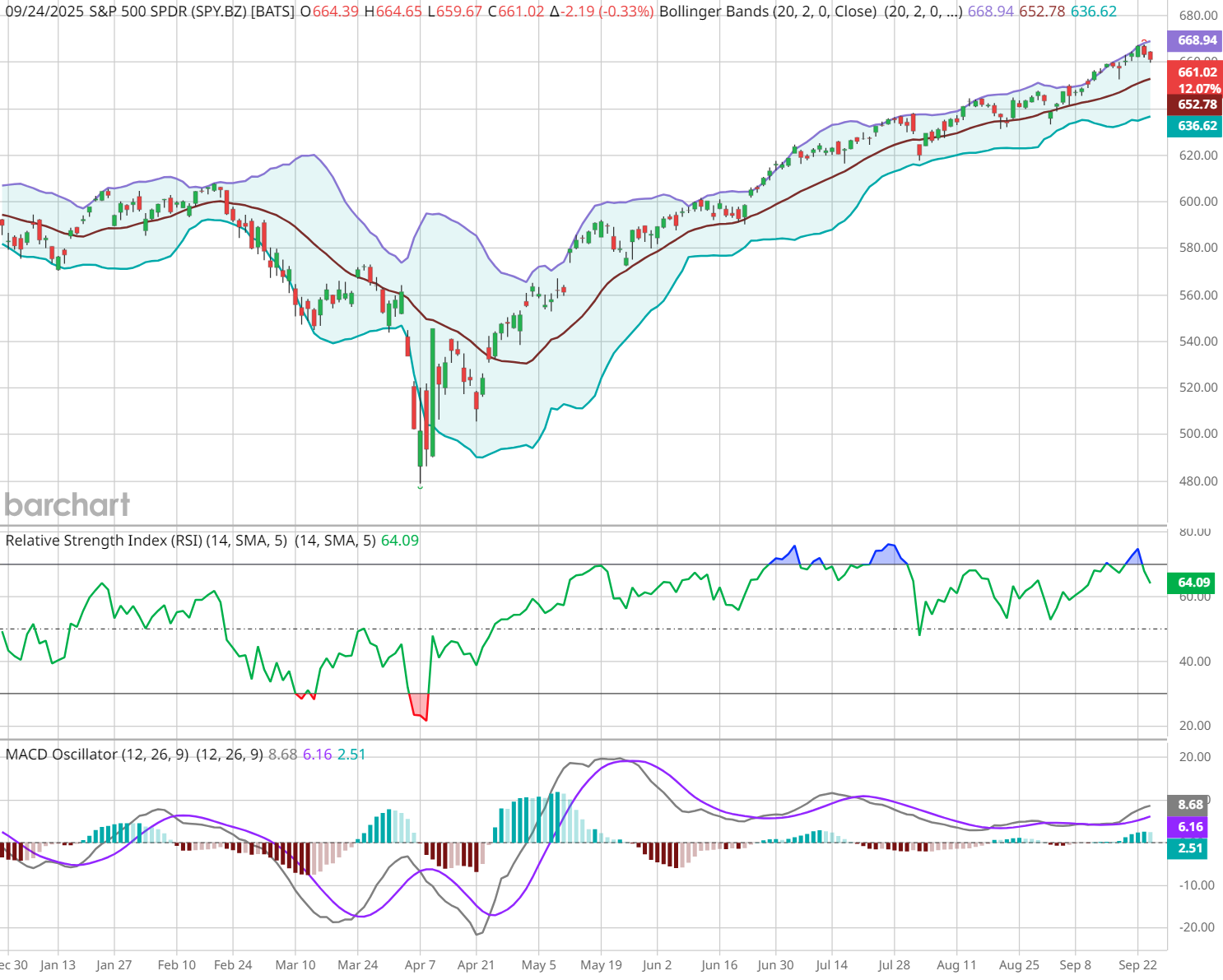 - SPY Interactive Chart → add RSI, MACD, Bollinger Bands.