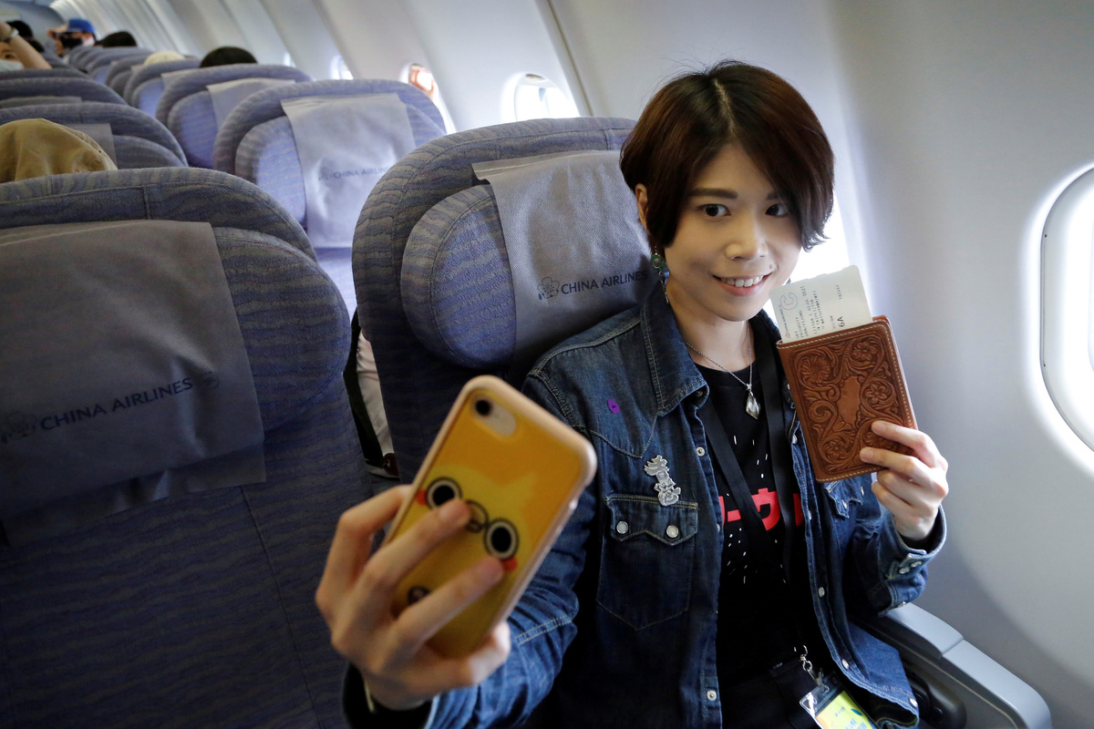 The passengers got boarding passes, and proceeded through security and immigration before boarding an Airbus A330 of Taiwan's largest carrier, China Airlines, where flight attendants chatted to them.