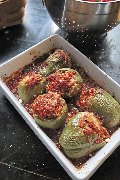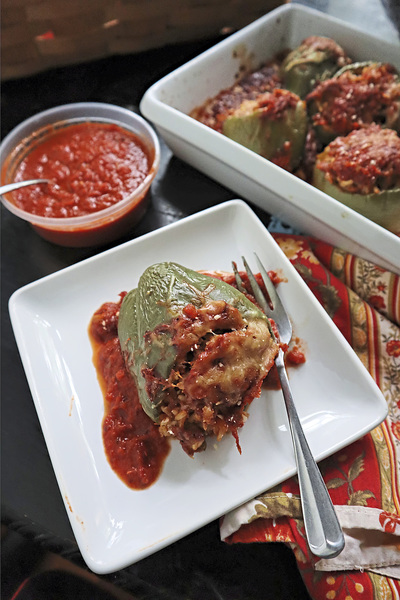Peppers taste just as good filled with a savory mix of ground beef and cheese as they do with spicy or sweet sausage, tuna, grains or just vegetables. It's the ultimate clear-your-fridge-or-pantry dish.