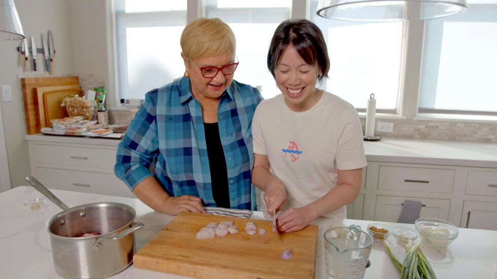 Among her stops, Bastianich visits Houston to meet “MasterChef” season-three winner Christine Ha, who often mixes her Vietnamese heritage with Tex-Mex elements. The two chefs make a braised pork belly dish, while Ha recalls being teased as a youngster for the pungent lunches she brought from home.