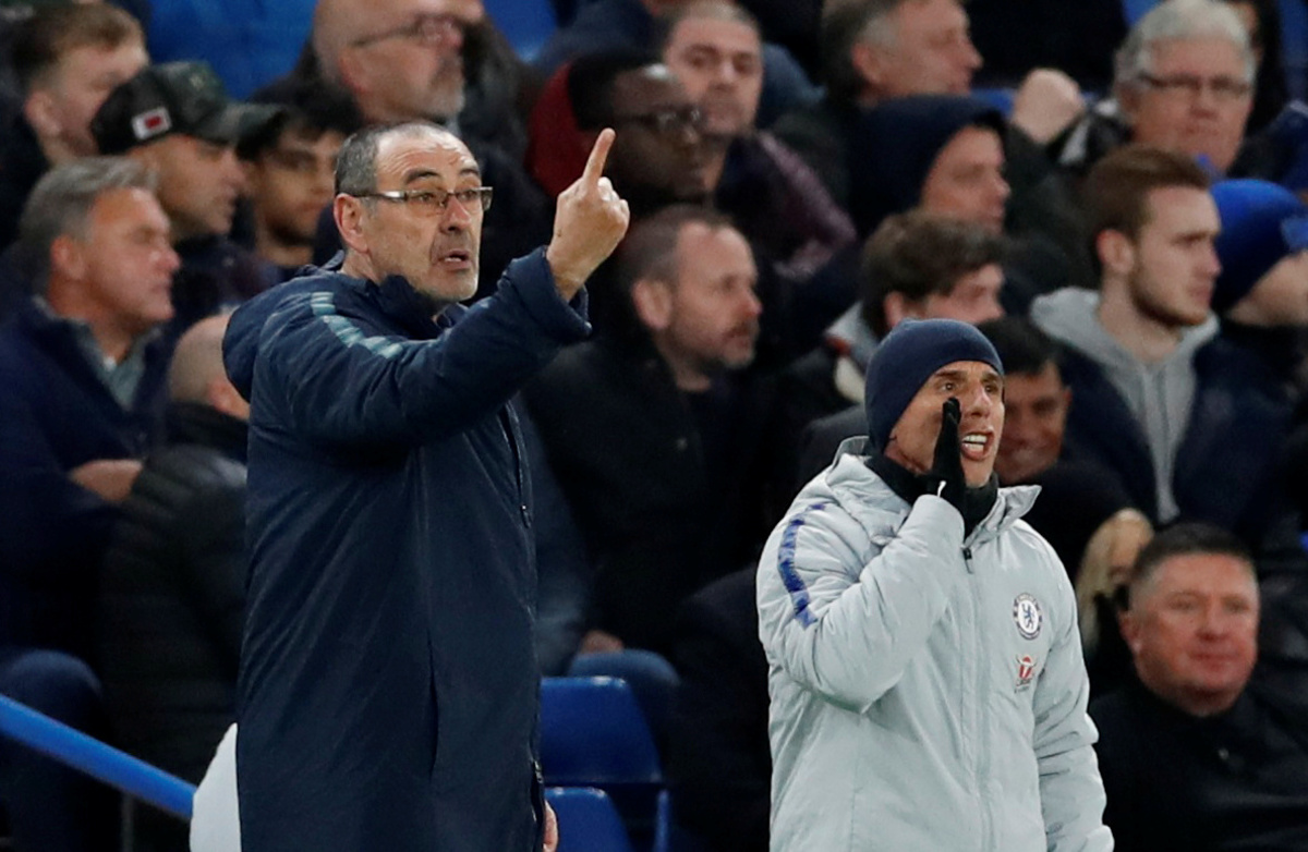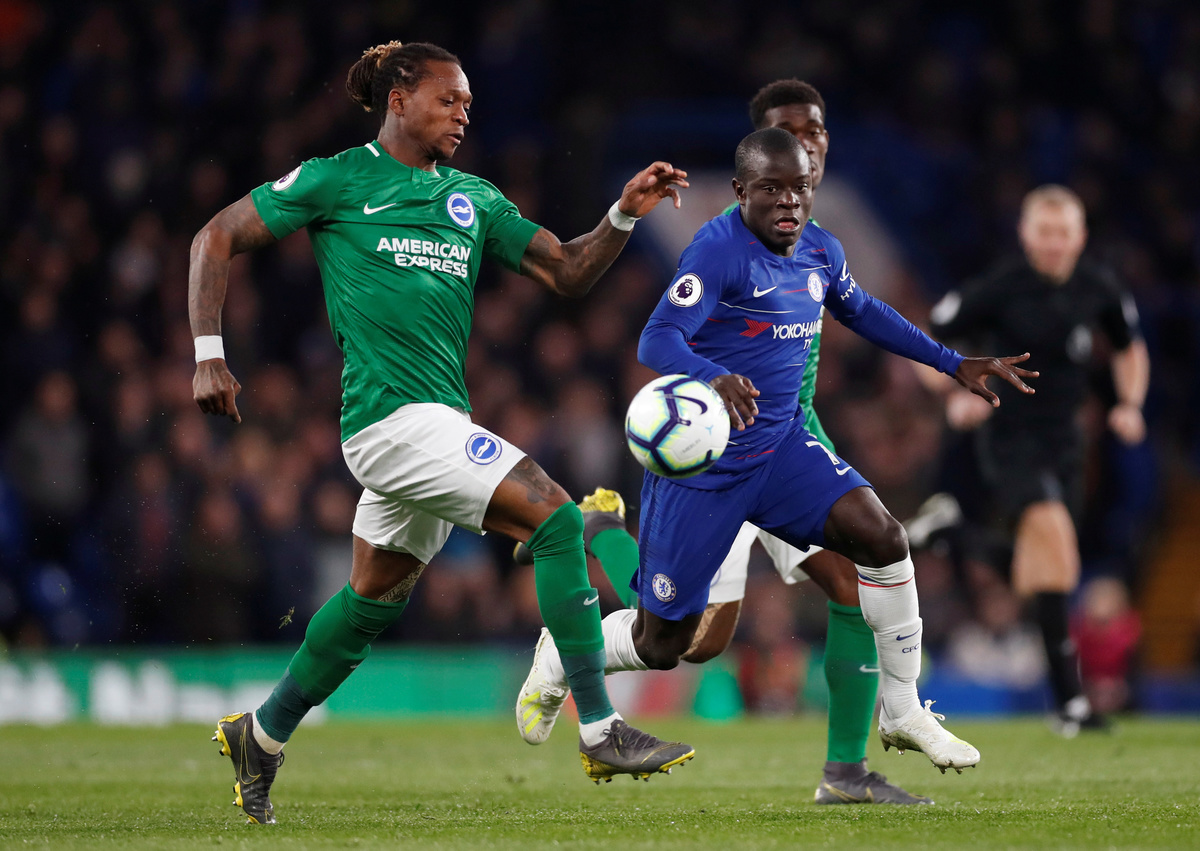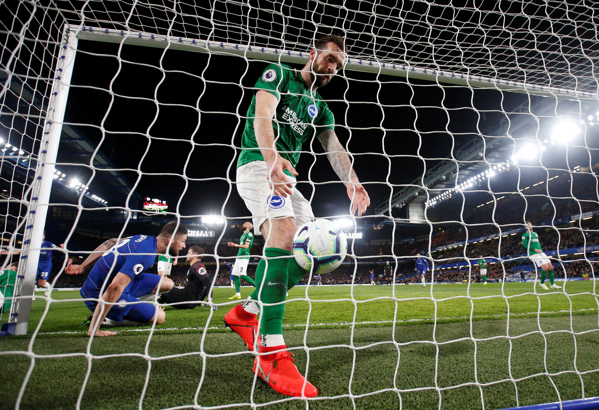 Soccer Football - Premier League - Chelsea v Brighton & Hove Albion - Stamford Bridge, London, Britain - April 3, 2019 Brighton manager Chris Hughton during the match REUTERS/David Klein Soccer Football - Premier League - Chelsea v Brighton & Hove Albion - Stamford Bridge, London, Britain - April 3, 2019 Chelsea's Olivier Giroud scores their first goal Action Images via Reuters/Matthew Childs Soccer Football - Premier League - Chelsea v Brighton & Hove Albion - Stamford Bridge, London, Britain - April 3, 2019 Chelsea's Olivier Giroud scores their first goal REUTERS/David KleinSoccer Football - Premier League - Chelsea v Brighton & Hove Albion - Stamford Bridge, London, Britain - April 3, 2019 Brighton's Shane Duffy picks the ball out of the net after Chelsea's Olivier Giroud scores their first goal Action Images via Reuters/Matthew Childs Soccer Football - Premier League - Chelsea v Brighton & Hove Albion - Stamford Bridge, London, Britain - April 3, 2019 Chelsea's Olivier Giroud celebrates scoring their first goal Action Images via Reuters/Matthew Childs Soccer Football - Premier League - Chelsea v Brighton & Hove Albion - Stamford Bridge, London, Britain - April 3, 2019 Brighton's Gaetan Bong in action with Chelsea's N'Golo Kante Action Images via Reuters/Matthew Childs Soccer Football - Premier League - Chelsea v Brighton & Hove Albion - Stamford Bridge, London, Britain - April 3, 2019 Chelsea manager Maurizio Sarri reacts REUTERS/David Klein Soccer Football - Premier League - Chelsea v Brighton & Hove Albion - Stamford Bridge, London, Britain - April 3, 2019 Chelsea's Callum Hudson-Odoi in action REUTERS/David Klein