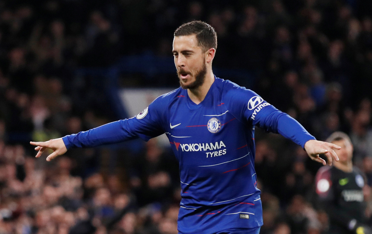 Soccer Football - Premier League - Chelsea v Brighton & Hove Albion - Stamford Bridge, London, Britain - April 3, 2019 Chelsea's Eden Hazard celebrates scoring their second goal REUTERS/David Klein