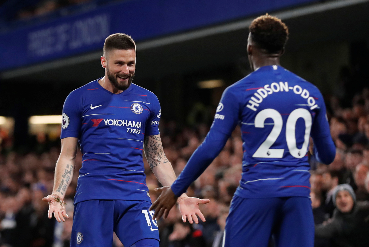 Local boy Hudson-Odoi, who last month made his first start for England but has struggled to feature for Chelsea, created the opener when he crossed for World Cup winner Giroud to score with a flick of the outside of his boot in the 38th minute.