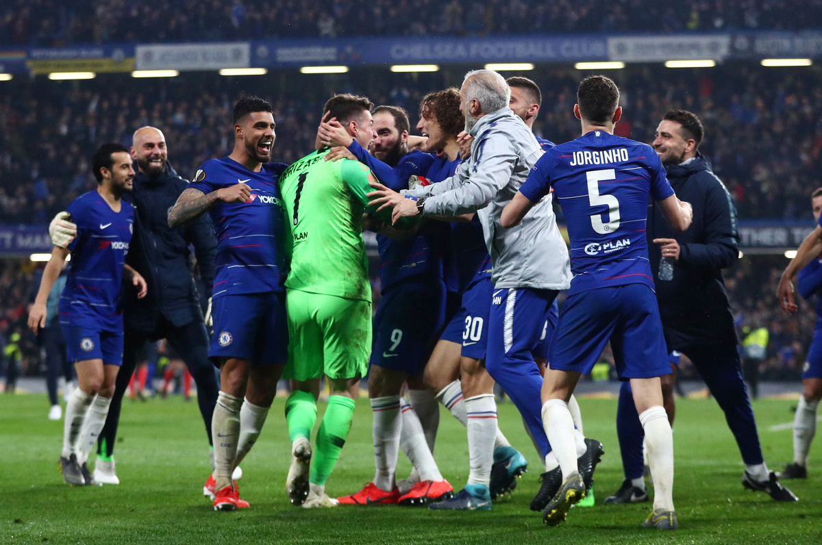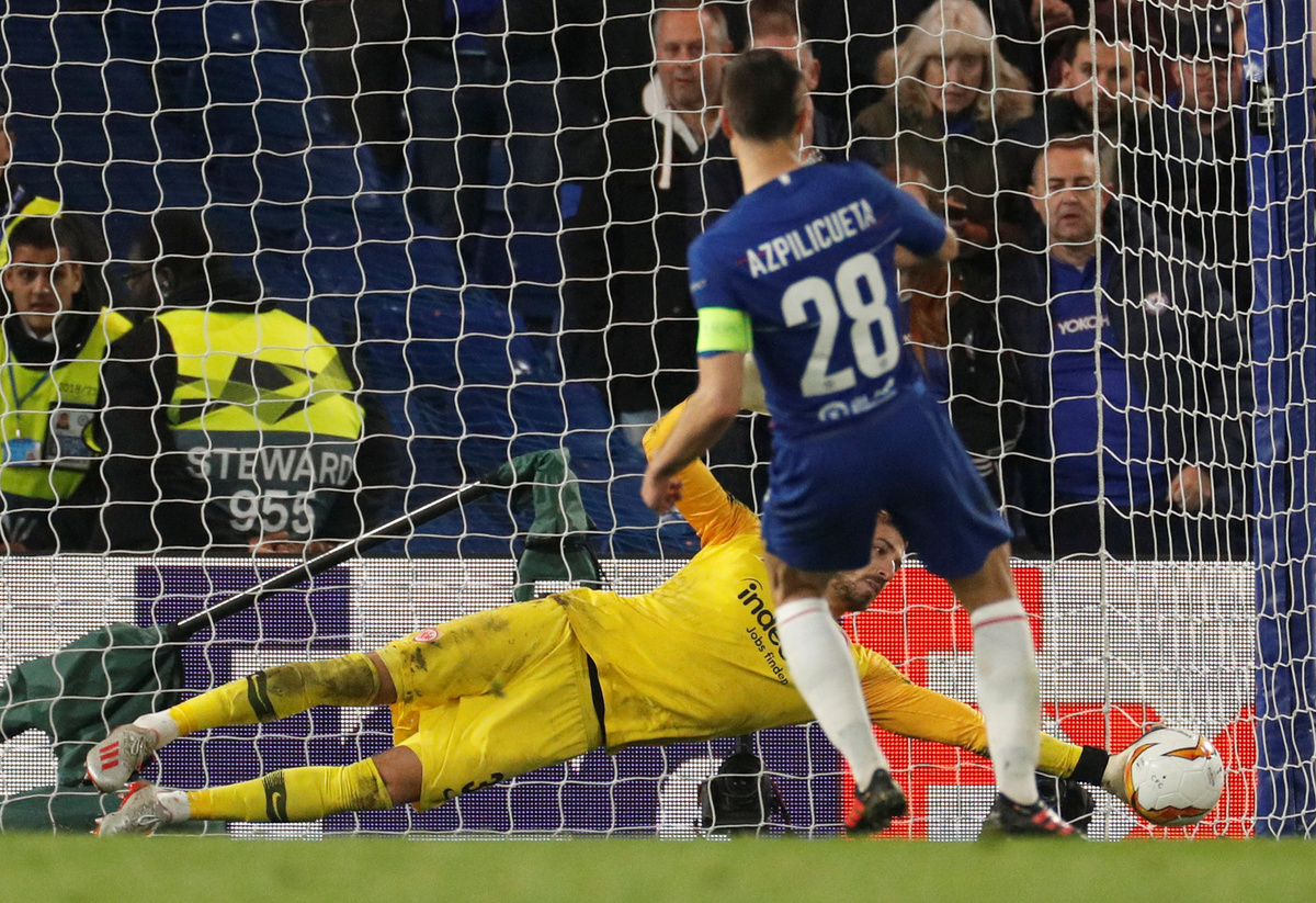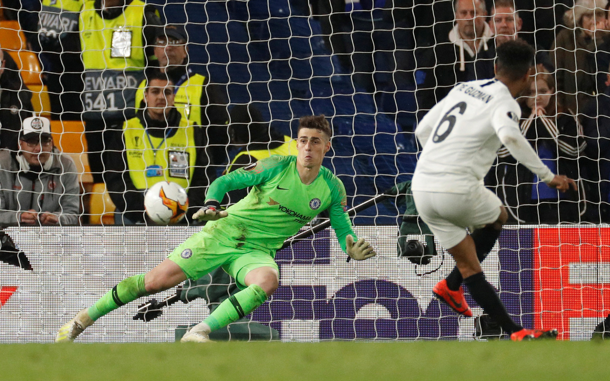 Chelsea goalkeeper Kepa Arrizabalaga was another hero on the night, saving penalties from Martin Hinteregger and Goncalo Paciencia in the shootout in which Chelsea captain Cesar Azpilicueta also had his shot stopped.