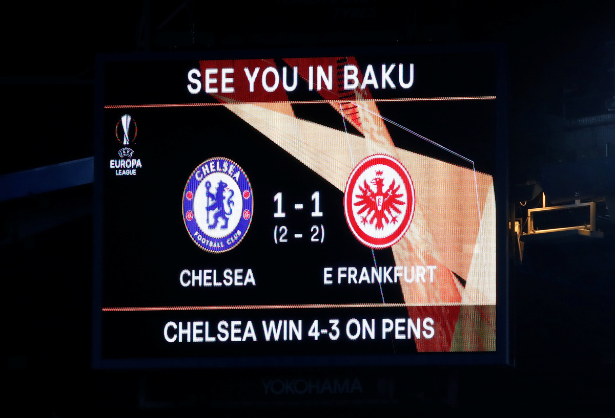 LONDON (Reuters) - Eden Hazard scored the winning penalty for Chelsea to beat Eintracht Frankfurt 4-3 in their Europa League semi-final shootout on Thursday and become the fourth English side to reach a European final this season.