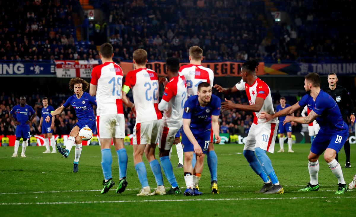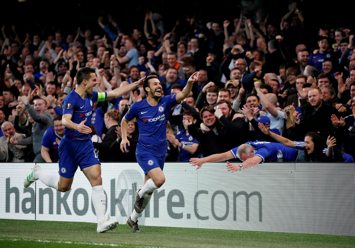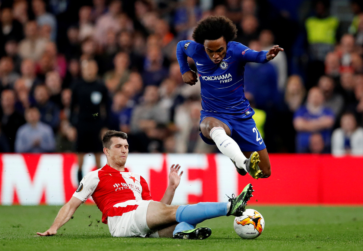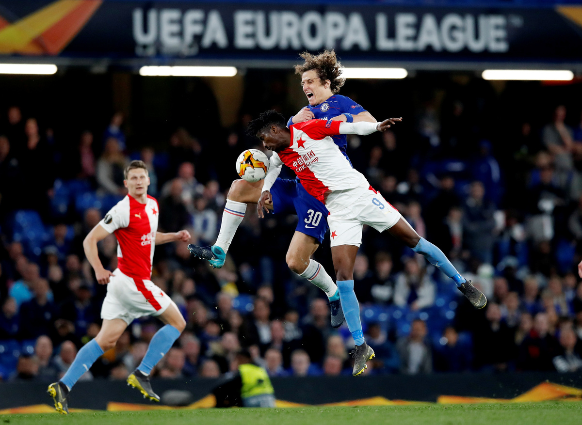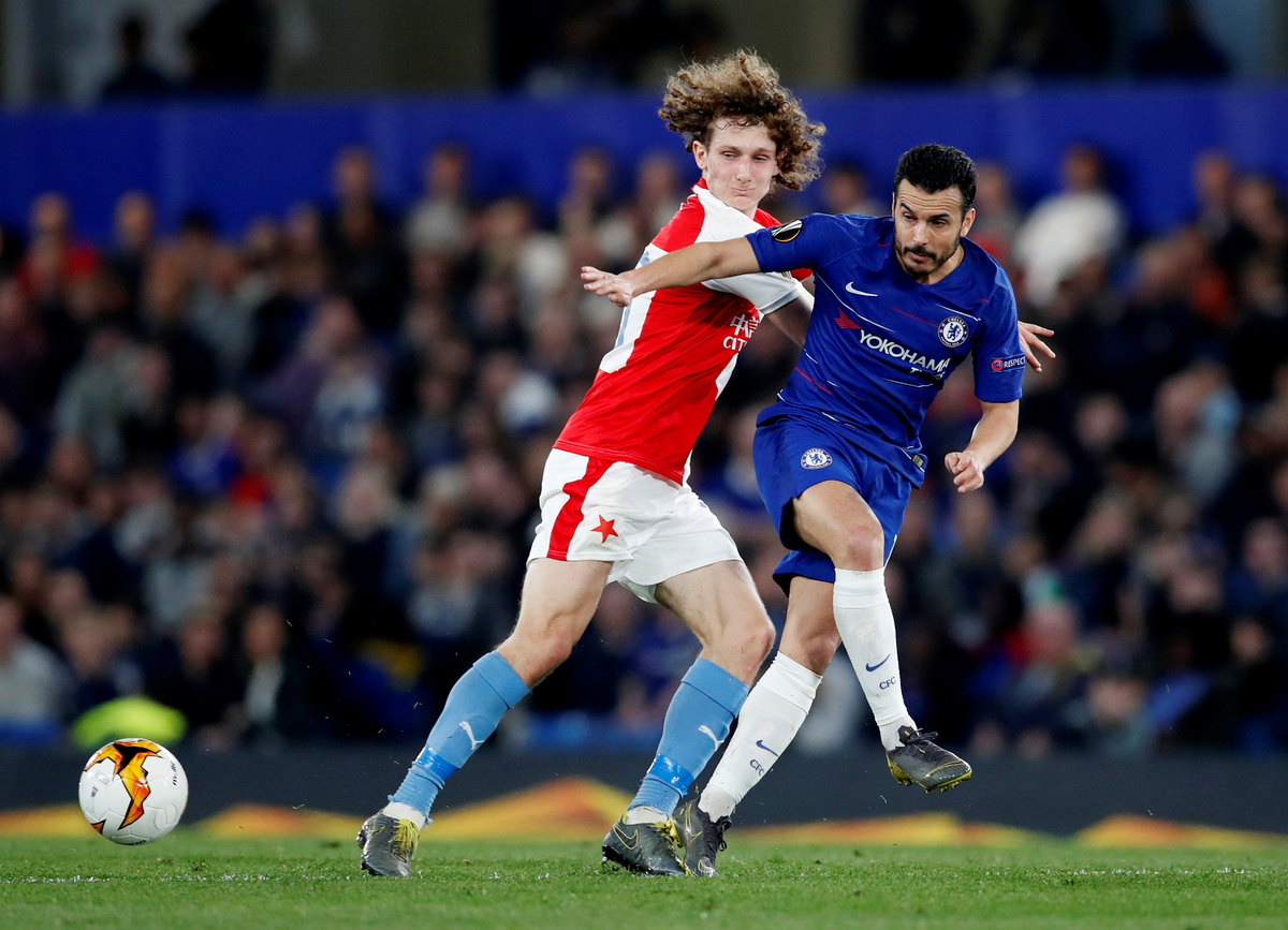 LONDON (Reuters) - Chelsea reached the Europa League semi-finals by beating Slavia Prague 4-3 in a roller-coaster game on Thursday, helped by a Pedro brace in a first-half onslaught before withstanding a comeback bid by the Czechs after the break.