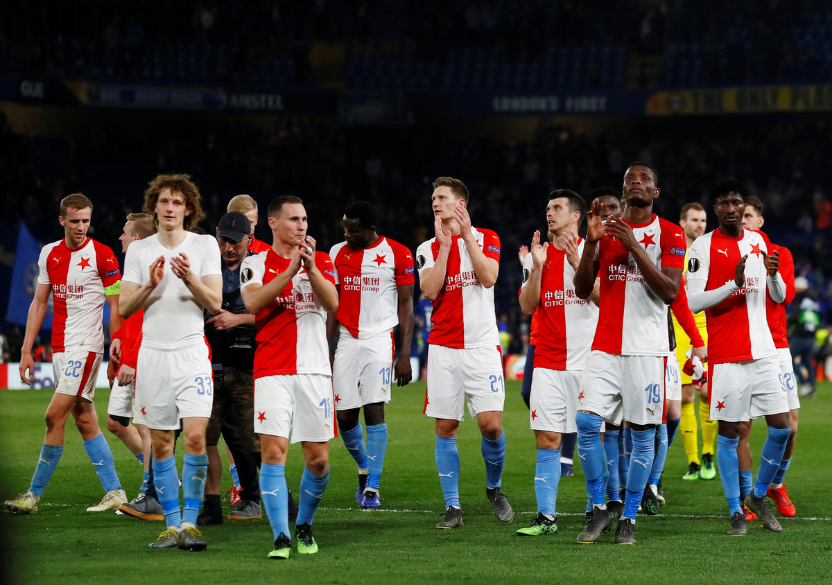 A minute earlier, Slavia's captain Tomas Soucek had given the boisterous Czech fans something to cheer when he powered in a header from a corner, leaving the door open for the visitors' improbable attempt to turn the game around.
