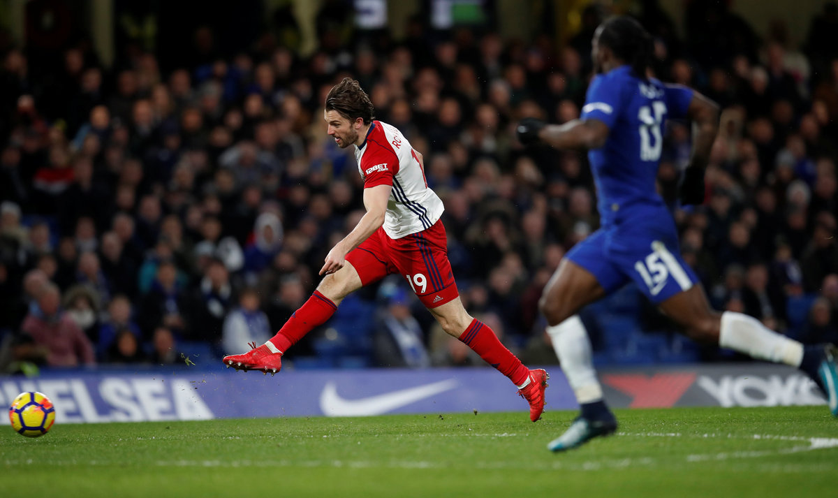 Soccer Football - Premier League - Chelsea vs West Bromwich Albion - Stamford Bridge, London, Britain - February 12, 2018 West Bromwich Albion's Jay Rodriguez misses a chance to score REUTERS/Eddie Keogh