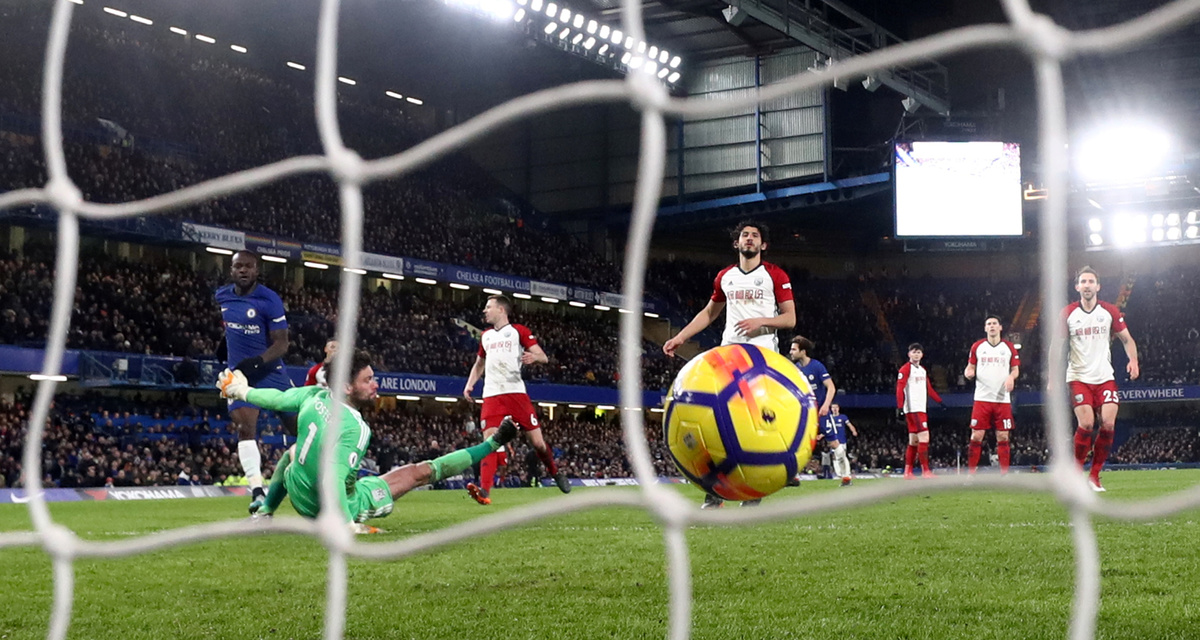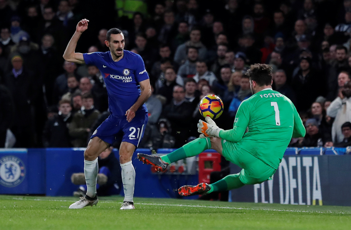 Soccer Football - Premier League - Chelsea vs West Bromwich Albion - Stamford Bridge, London, Britain - February 12, 2018 Chelsea’s Davide Zappacosta has a shot saved by West Bromwich Albion's Ben Foster Action Images via Reuters/Andrew Couldridge
