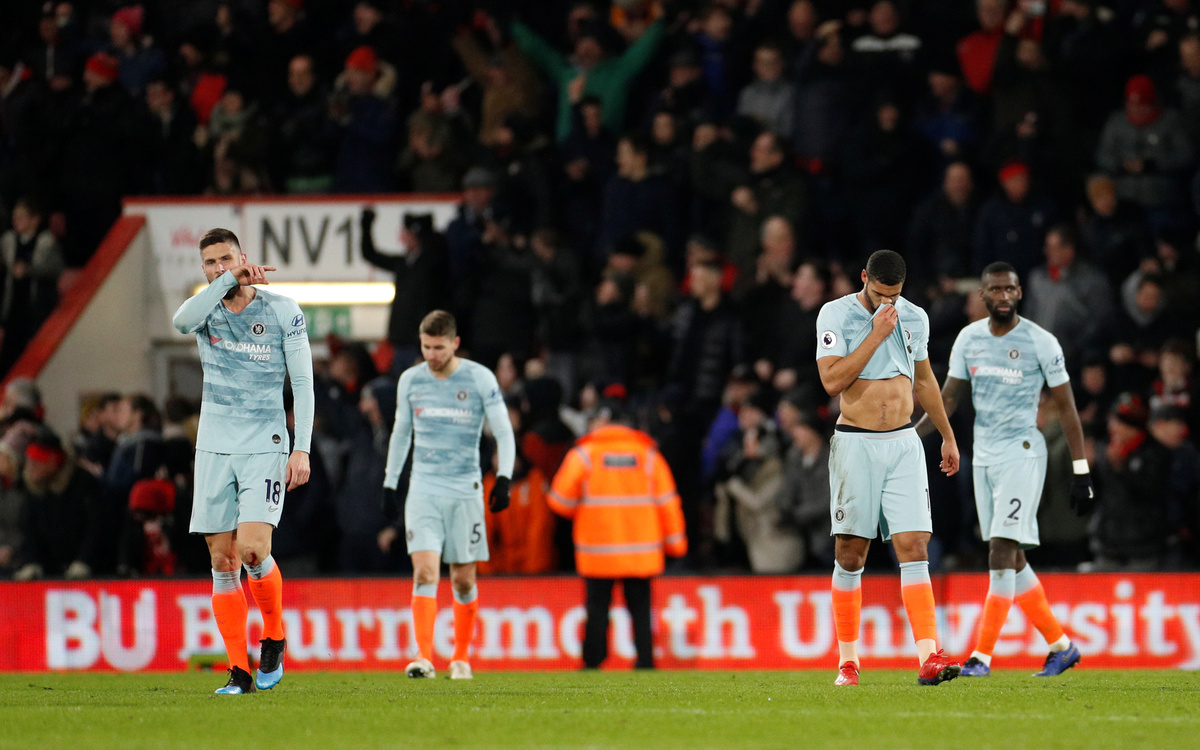 Chelsea's top-four hopes suffered a huge dent as Maurizio Sarri's side collapsed to a humiliating 4-0 defeat at mid-table Bournemouth on Wednesday -- a result that dropped them down to fifth in the table.