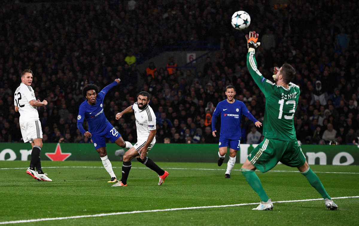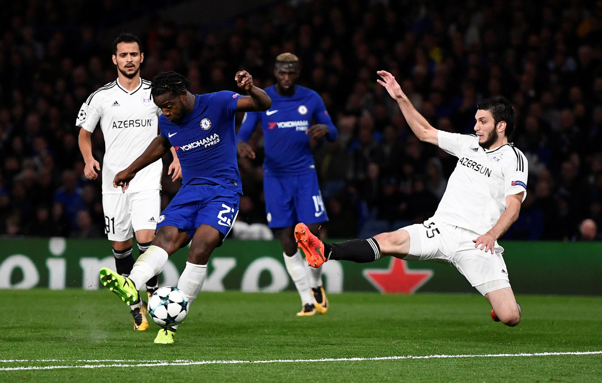 LONDON (Reuters) - Chelsea enjoyed a triumphant return to the Champions League after a year out on Tuesday, thumping the competition's debutants Qarabag 6-0, including a stunning, if miscued, strike from new signing Davide Zappacosta.