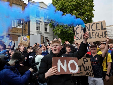 Technical director Petr Cech spoke to fans directly on Fulham Road, while scores of police contained the protests. But then, ahead of a delayed kick-off, Chelsea had signalled their intent to quit the controversial competition.