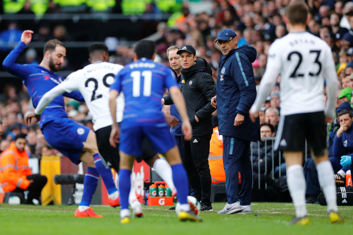 (Reuters) - First-half goals from Gonzalo Higuain and Jorginho earned Chelsea a 2-1 win over struggling Fulham in an entertaining southwest London Premier League derby on Sunday but they had to work hard for the points.