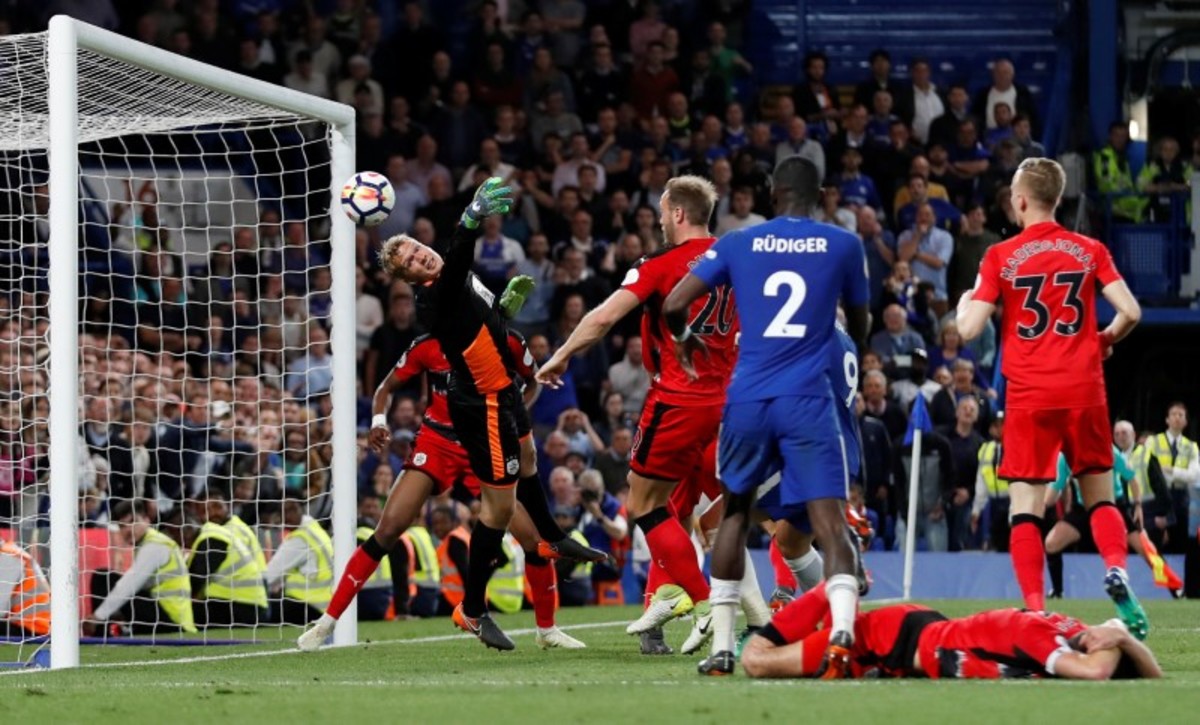 Huddersfield, needing a point to be sure of avoiding relegation, took a shock lead in the 50th minute when a long ball from Aaron Mooy found Laurent Depoitre who won a challenge with Chelsea goalkeeper Willy Caballero on the edge of the box and put the ball in the empty net.
