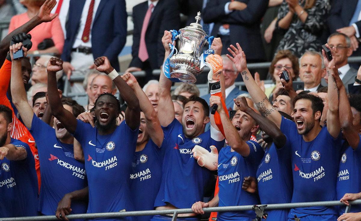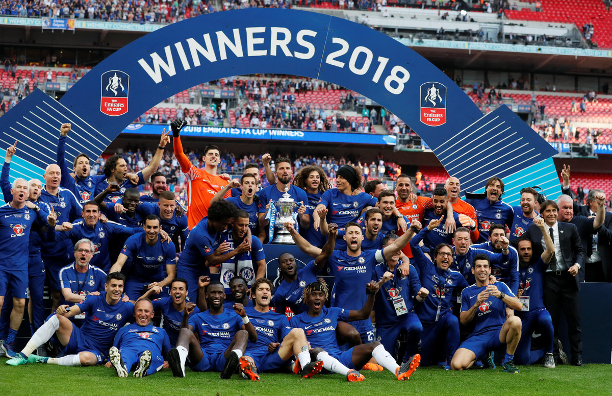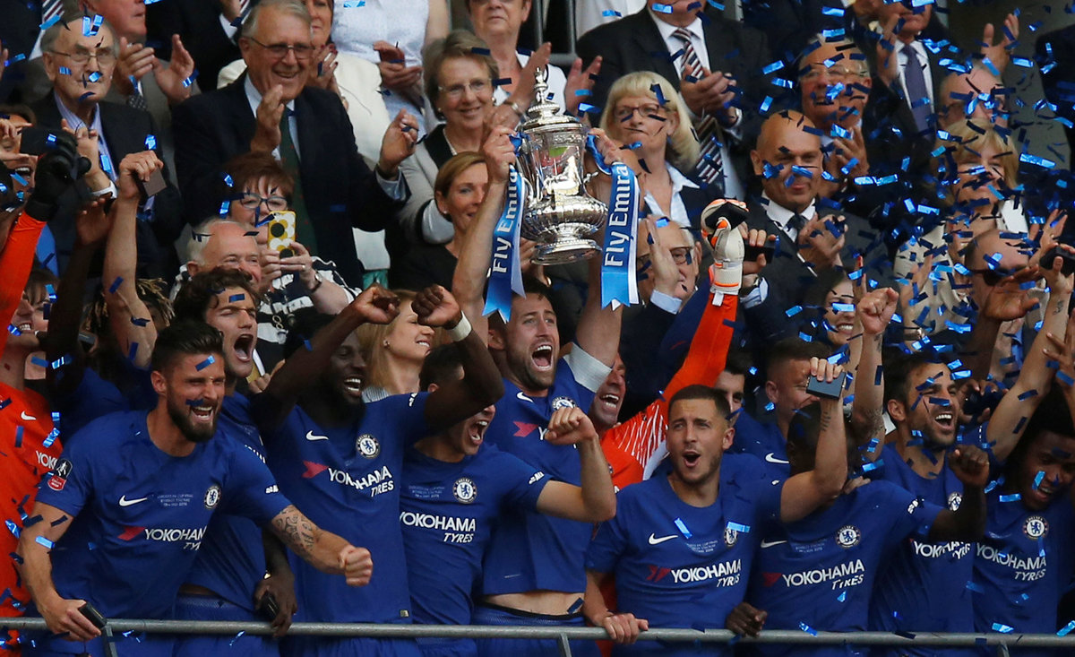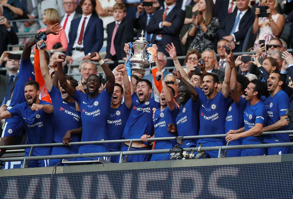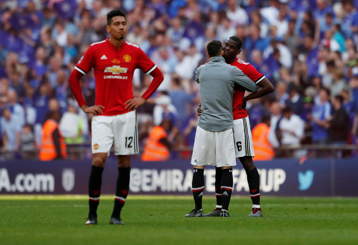 Soccer Football - FA Cup Final - Chelsea vs Manchester United - Wembley Stadium, London, Britain - May 19, 2018 Chelsea celebrate winning the final with the trophy REUTERS/David KleinSoccer Football - FA Cup Final - Chelsea vs Manchester United - Wembley Stadium, London, Britain - May 19, 2018 Chelsea's Gary Cahill lifts the trophy as they celebrate winning the FA Cup REUTERS/Andrew YatesSoccer Football - FA Cup Final - Chelsea vs Manchester United - Wembley Stadium, London, Britain - May 19, 2018 Chelsea's Gary Cahill lifts the trophy as Chelsea celebrate winning the final REUTERS/David KleinSoccer Football - FA Cup Final - Chelsea vs Manchester United - Wembley Stadium, London, Britain - May 19, 2018 Chelsea's Gary Cahill lifts the trophy as they celebrate winning the final REUTERS/David KleinSoccer Football - FA Cup Final - Chelsea vs Manchester United - Wembley Stadium, London, Britain - May 19, 2018 Chelsea manager Antonio Conte celebrates winning the final with the trophy REUTERS/David KleinSoccer Football - FA Cup Final - Chelsea vs Manchester United - Wembley Stadium, London, Britain - May 19, 2018 Manchester United's Alexis Sanchez looks dejected as Chelsea players celebrate at the end of the match Action Images via Reuters/Lee SmithSoccer Football - FA Cup Final - Chelsea vs Manchester United - Wembley Stadium, London, Britain - May 19, 2018 Chelsea's Antonio Rudiger celebrates winning the final with Pedro REUTERS/David KleinSoccer Football - FA Cup Final - Chelsea vs Manchester United - Wembley Stadium, London, Britain - May 19, 2018 Chelsea manager Antonio Conte celebrates winning the final with Cesc Fabregas REUTERS/David KleinSoccer Football - FA Cup Final - Chelsea vs Manchester United - Wembley Stadium, London, Britain - May 19, 2018 Chelsea manager Antonio Conte celebrates winning the final with Thibaut Courtois REUTERS/David KleinSoccer Football - FA Cup Final - Chelsea vs Manchester United - Wembley Stadium, London, Britain - May 19, 2018 Chelsea manager Antonio Conte celebrates winning the final as Manchester United manager Jose Mourinho looks dejected REUTERS/David KleinSoccer Football - FA Cup Final - Chelsea vs Manchester United - Wembley Stadium, London, Britain - May 19, 2018 Manchester United's Chris Smalling looks dejected after the match REUTERS/Andrew YatesSoccer Football - FA Cup Final - Chelsea vs Manchester United - Wembley Stadium, London, Britain - May 19, 2018 Manchester United's Paul Pogba and Chris Smalling look dejected at the end of the match Action Images via Reuters/Lee SmithSoccer Football - FA Cup Final - Chelsea vs Manchester United - Wembley Stadium, London, Britain - May 19, 2018 Chelsea's Cesc Fabregas celebrates winning the final REUTERS/David KleinSoccer Football - FA Cup Final - Chelsea vs Manchester United - Wembley Stadium, London, Britain - May 19, 2018 Manchester United's Paul Pogba has a shot at goal Action Images via Reuters/Lee SmithSoccer Football - FA Cup Final - Chelsea vs Manchester United - Wembley Stadium, London, Britain - May 19, 2018 Manchester United's Alexis Sanchez shoots at goal REUTERS/Andrew YatesSoccer Football - FA Cup Final - Chelsea vs Manchester United - Wembley Stadium, London, Britain - May 19, 2018 Manchester United's Paul Pogba reacts after heading a chance wide REUTERS/Andrew YatesSoccer Football - FA Cup Final - Chelsea vs Manchester United - Wembley Stadium, London, Britain - May 19, 2018 Manchester United's Phil Jones looks on Action Images via Reuters/Lee SmithSoccer Football - FA Cup Final - Chelsea vs Manchester United - Wembley Stadium, London, Britain - May 19, 2018 Manchester United's Phil Jones receives medical attention Action Images via Reuters/Andrew CouldridgeSoccer Football - FA Cup Final - Chelsea vs Manchester United - Wembley Stadium, London, Britain - May 19, 2018 Chelsea's Gary Cahill celebrates after the match Action Images via Reuters/Andrew CouldridgeSoccer Football - FA Cup Final - Chelsea vs Manchester United - Wembley Stadium, London, Britain - May 19, 2018 Chelsea's Olivier Giroud in action with Manchester United's Phil Jones Action Images via Reuters/Andrew CouldridgeSoccer Football - FA Cup Final - Chelsea vs Manchester United - Wembley Stadium, London, Britain - May 19, 2018 Chelsea's Thibaut Courtois celebrates winning the final REUTERS/David KleinSoccer Football - FA Cup Final - Chelsea vs Manchester United - Wembley Stadium, London, Britain - May 19, 2018 Chelsea's Olivier Giroud in action with Manchester United's Chris Smalling Action Images via Reuters/Lee SmithSoccer Football - FA Cup Final - Chelsea vs Manchester United - Wembley Stadium, London, Britain - May 19, 2018 Chelsea's Eden Hazard in action with Manchester United's Chris Smalling REUTERS/David KleinSoccer Football - FA Cup Final - Chelsea vs Manchester United - Wembley Stadium, London, Britain - May 19, 2018 Manchester United's Paul Pogba in action with Chelsea's Cesc Fabregas Action Images via Reuters/Andrew CouldridgeSoccer Football - FA Cup Final - Chelsea vs Manchester United - Wembley Stadium, London, Britain - May 19, 2018 Chelsea's Eden Hazard in action REUTERS/David KleinSoccer Football - FA Cup Final - Chelsea vs Manchester United - Wembley Stadium, London, Britain - May 19, 2018 Manchester United's Chris Smalling lies injured Action Images via Reuters/Andrew CouldridgeSoccer Football - FA Cup Final - Chelsea vs Manchester United - Wembley Stadium, London, Britain - May 19, 2018 Manchester United manager Jose Mourinho consoles Paul Pogba after the match REUTERS/Andrew YatesSoccer Football - FA Cup Final - Chelsea vs Manchester United - Wembley Stadium, London, Britain - May 19, 2018 Manchester United's Ander Herrera looks dejected after the match REUTERS/Andrew Yates