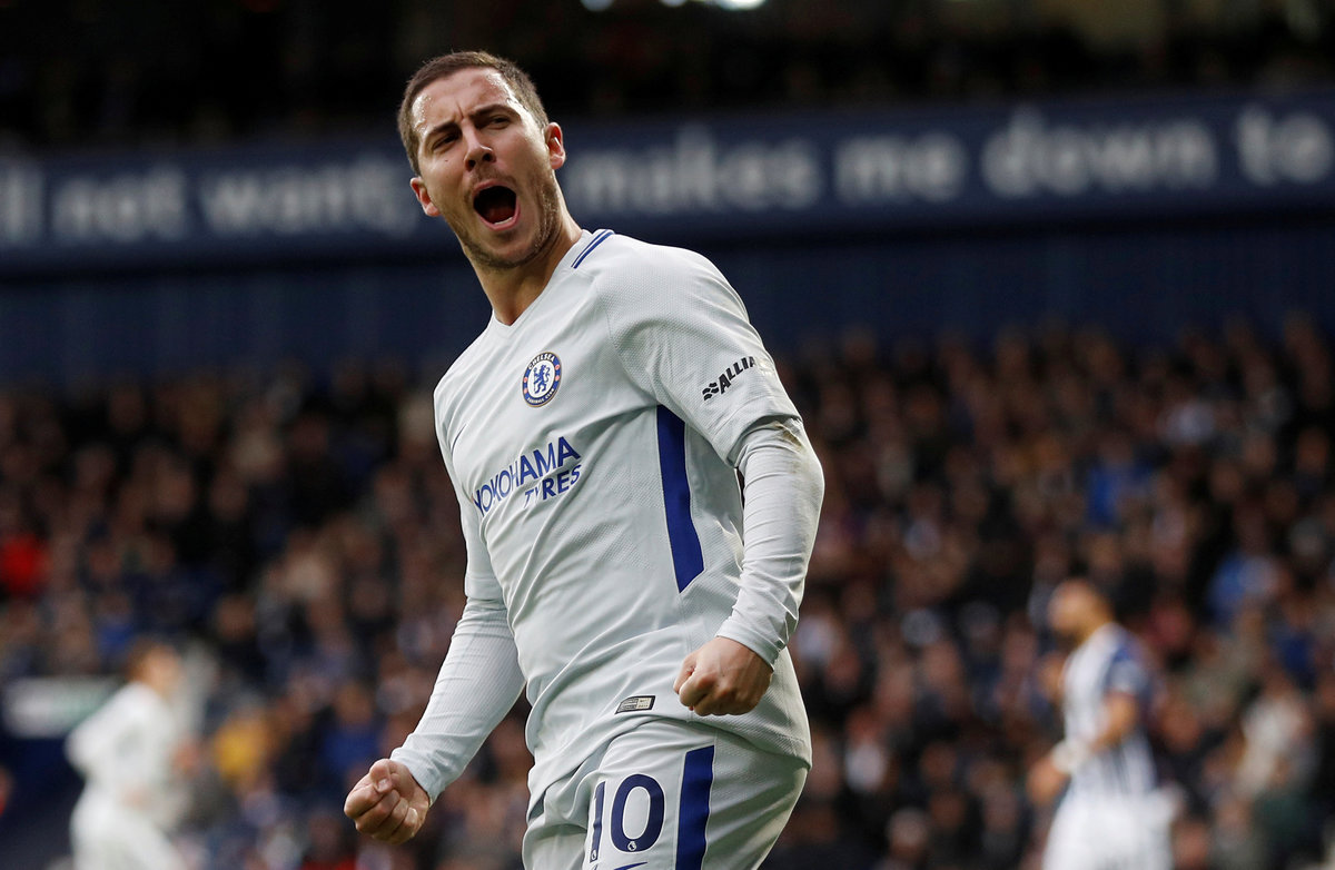 Soccer Football - Premier League - West Bromwich Albion vs Chelsea - The Hawthorns, West Bromwich, Britain - November 18, 2017 Chelsea's Eden Hazard celebrates their first goal REUTERS/Peter Nicholls