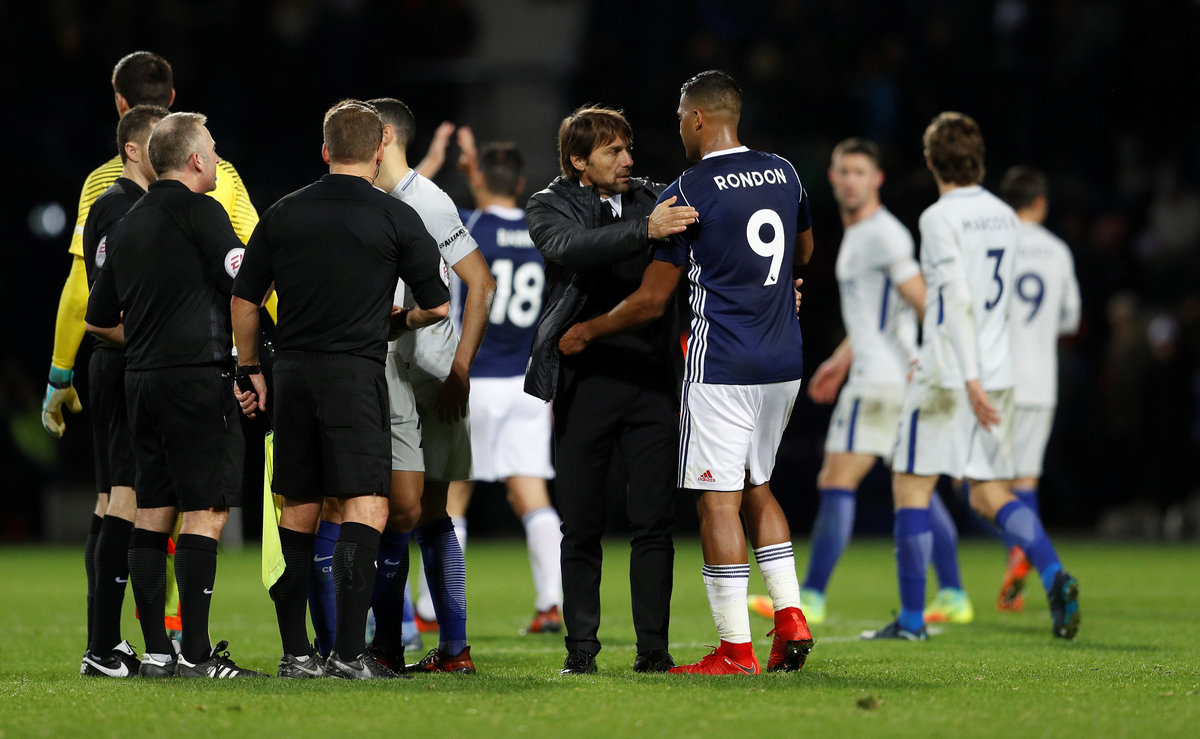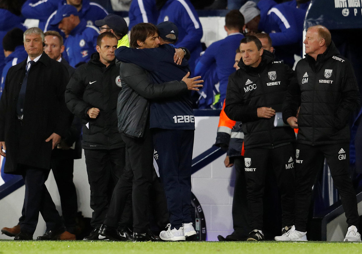 Soccer Football - Premier League - West Bromwich Albion vs Chelsea - The Hawthorns, West Bromwich, Britain - November 18, 2017 Chelsea players applauds fans after the match REUTERS/Peter NichollsSoccer Football - Premier League - West Bromwich Albion vs Chelsea - The Hawthorns, West Bromwich, Britain - November 18, 2017 West Bromwich Albion's Gareth McAuley applauds fans after the match REUTERS/Peter NichollsSoccer Football - Premier League - West Bromwich Albion vs Chelsea - The Hawthorns, West Bromwich, Britain - November 18, 2017 West Bromwich Albion's Gareth McAuley and Chelsea's Cesar Azpilicueta after the match REUTERS/Peter NichollsSoccer Football - Premier League - West Bromwich Albion vs Chelsea - The Hawthorns, West Bromwich, Britain - November 18, 2017 Chelsea manager Antonio Conte after the match with West Bromwich Albion's Salomon Rondon REUTERS/Peter Nicholls Soccer Football - Premier League - West Bromwich Albion vs Chelsea - The Hawthorns, West Bromwich, Britain - November 18, 2017 Chelsea's Gary Cahill and West Bromwich Albion's Jake Livermore after the match REUTERS/Peter NichollsSoccer Football - Premier League - West Bromwich Albion vs Chelsea - The Hawthorns, West Bromwich, Britain - November 18, 2017 West Bromwich Albion manager Tony Pulis and Chelsea manager Antonio Conte after the match REUTERS/Peter Nicholls