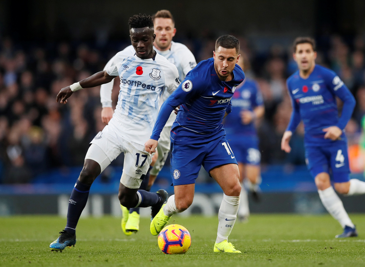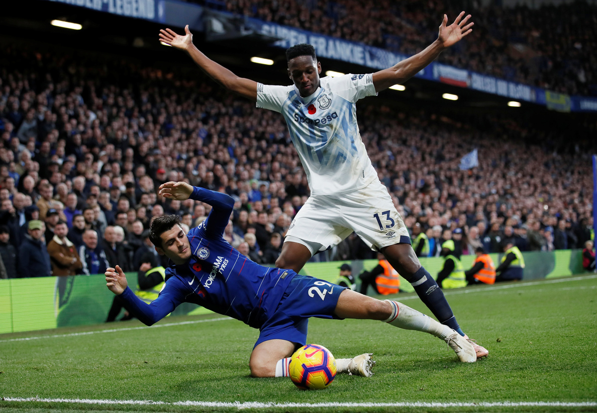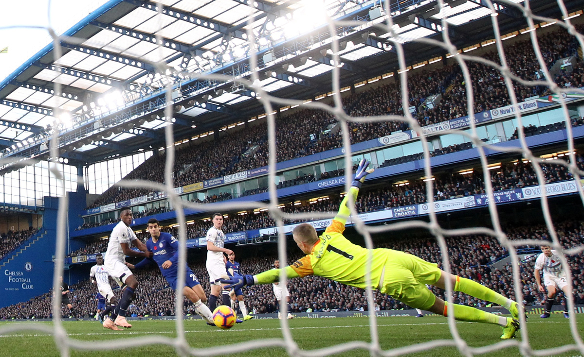 Everton's England goalkeeper Jordan Pickford, who produced a fine save from a Marcos Alonso volley in the first half, prevented Alvaro Morata from opening the scoring immediately after the restart with a dive to his right.