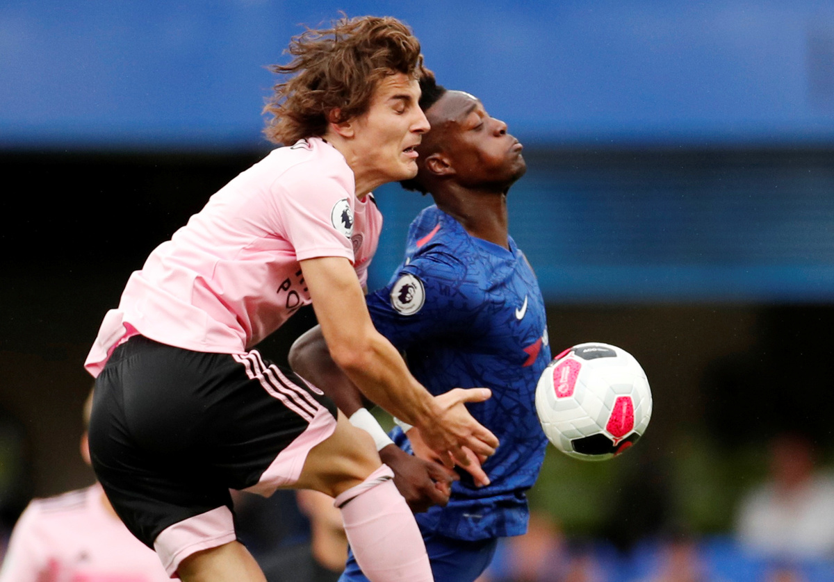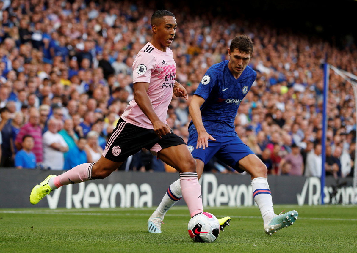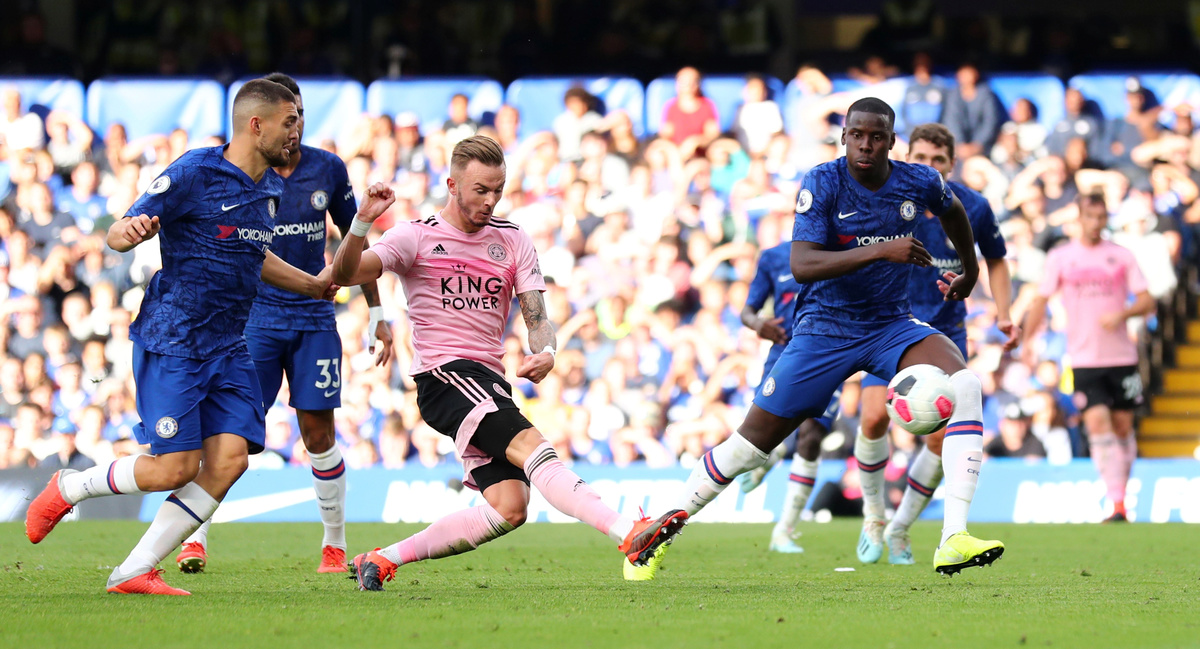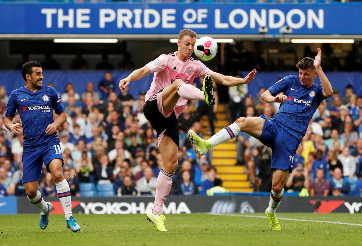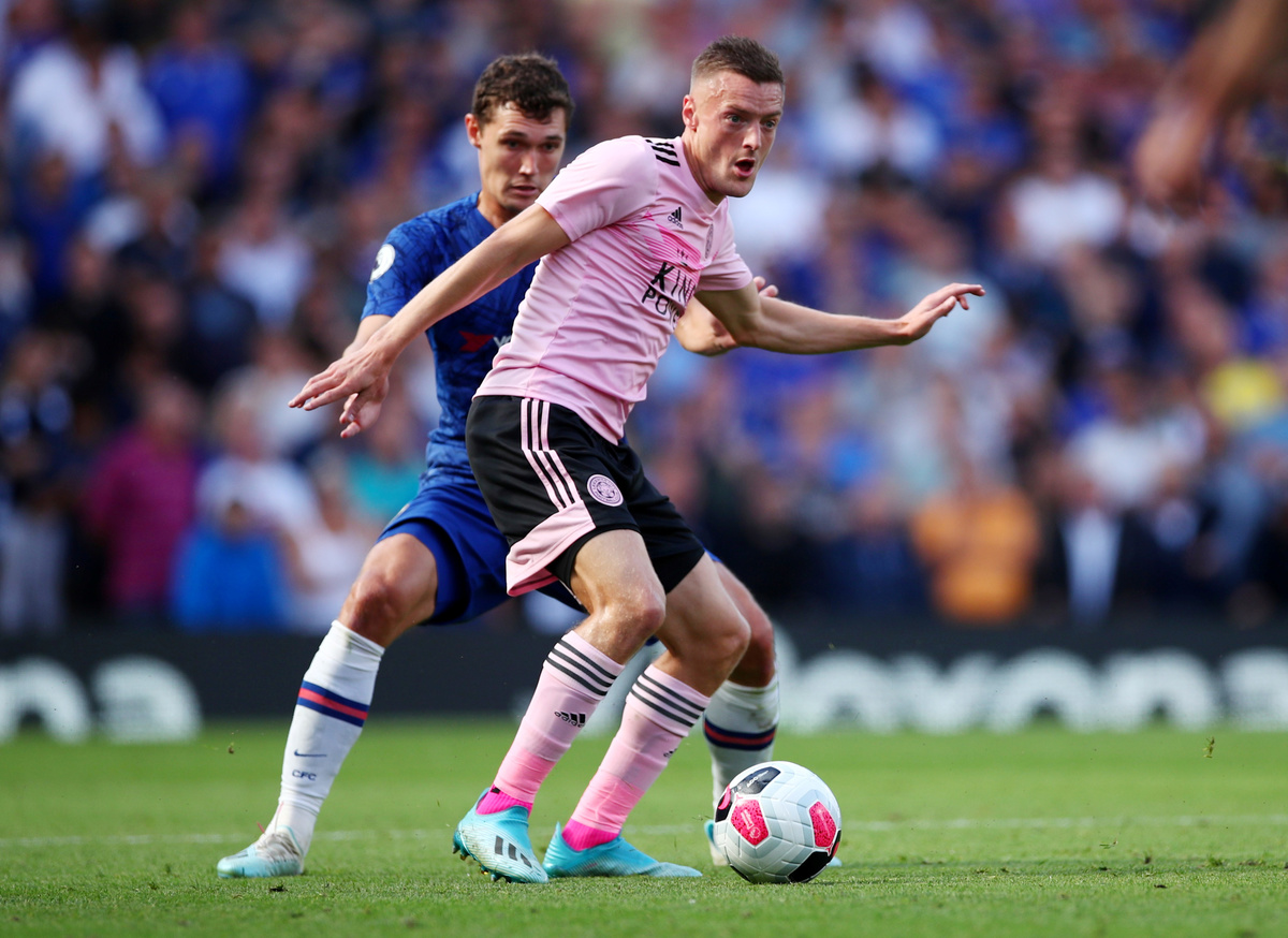 Soccer Football - Premier League - Chelsea v Leicester City - Stamford Bridge, London, Britain - August 18, 2019 Leicester City's Jamie Vardy shoots at goal REUTERS/Eddie Keogh Soccer Football - Premier League - Chelsea v Leicester City - Stamford Bridge, London, Britain - August 18, 2019 Leicester City's Jamie Vardy in action with Chelsea's Andreas Christensen REUTERS/Eddie Keogh Soccer Football - Premier League - Chelsea v Leicester City - Stamford Bridge, London, Britain - August 18, 2019 Leicester City's Youri Tielemans in action with Chelsea's Andreas Christensen Action Images via Reuters/John Sibley Soccer Football - Premier League - Chelsea v Leicester City - Stamford Bridge, London, Britain - August 18, 2019 Leicester City's James Maddison in action REUTERS/Eddie Keogh Soccer Football - Premier League - Chelsea v Leicester City - Stamford Bridge, London, Britain - August 18, 2019 Leicester City's Jonny Evans in action with Chelsea's Olivier Giroud REUTERS/Eddie Keogh Soccer Football - Premier League - Chelsea v Leicester City - Stamford Bridge, London, Britain - August 18, 2019 Leicester City's Christian Fuchs in action Action Images via Reuters/John Sibley