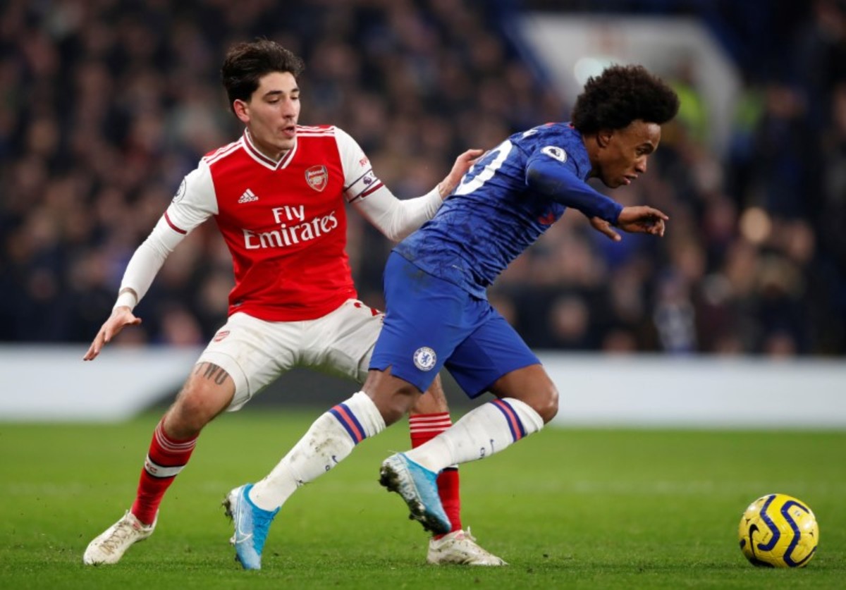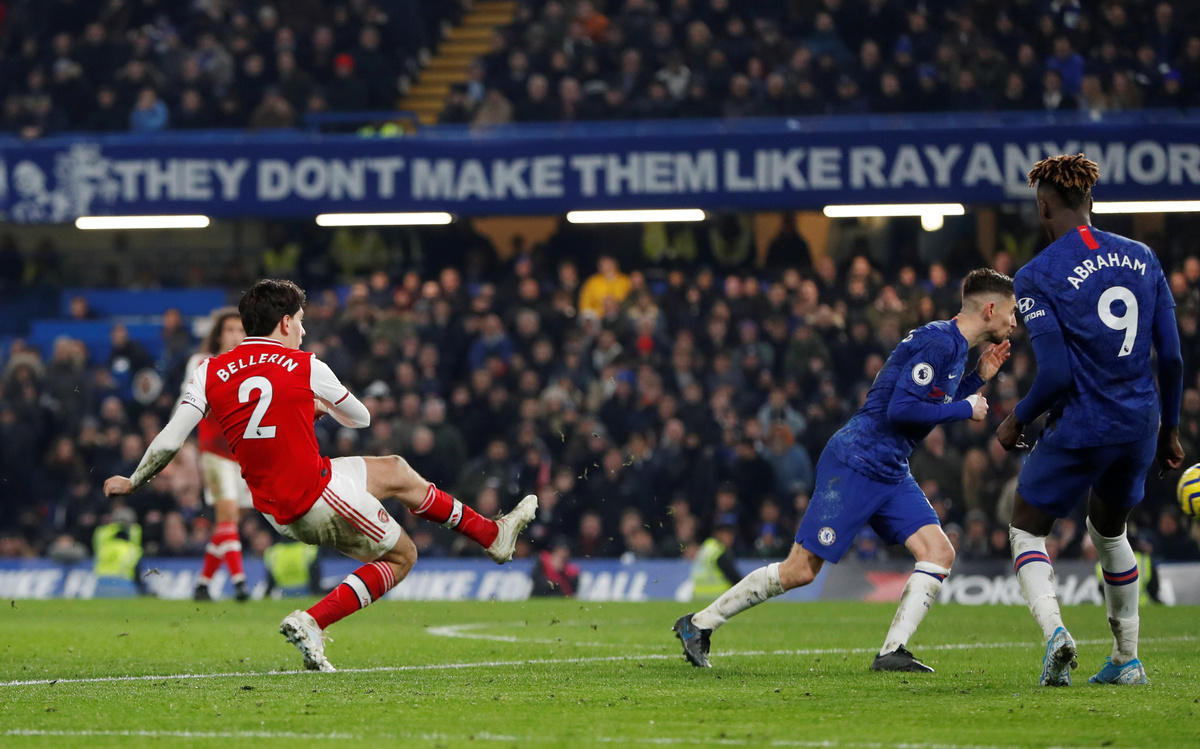 Hector Bellerin grabbed a last-gasp equaliser for 10-man Arsenal in a 2-2 draw against Chelsea at Stamford Bridge on Tuesday as the visitors recovered from a first-half David Luiz red card to peg back the Blues twice in a pulsating London derby.