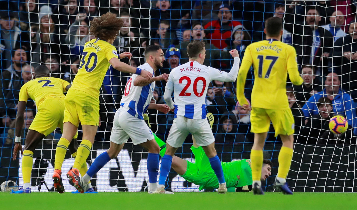 Brighton contributed to their own downfall 12 minutes from halftime with a poor clearance by Leon Balogun.