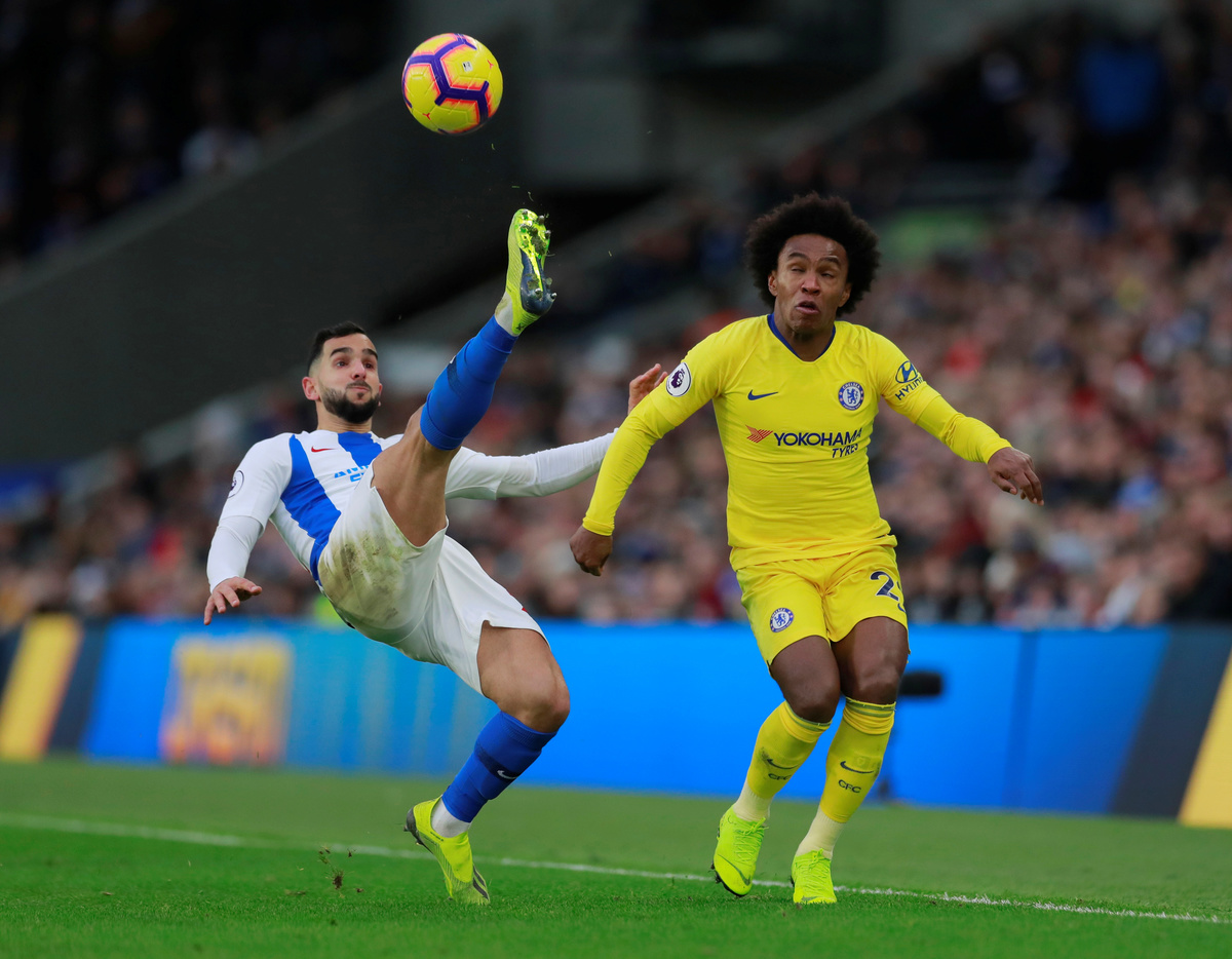 Chelsea consolidated fourth place in the Premier League with a 2-1 win at Brighton & Hove Albion on Sunday that became harder work than had seemed likely in the first half.