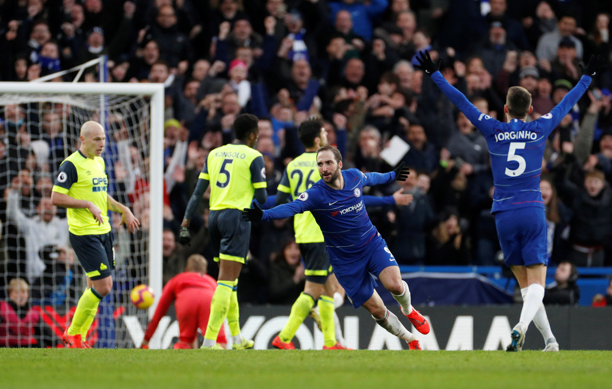 (Reuters) - Chelsea playmaker Eden Hazard described new signing Gonzalo Higuain as "unbelievable" in the box after the Argentina international scored twice in Saturday's 5-0 thrashing of the Premier League's bottom side Huddersfield Town.