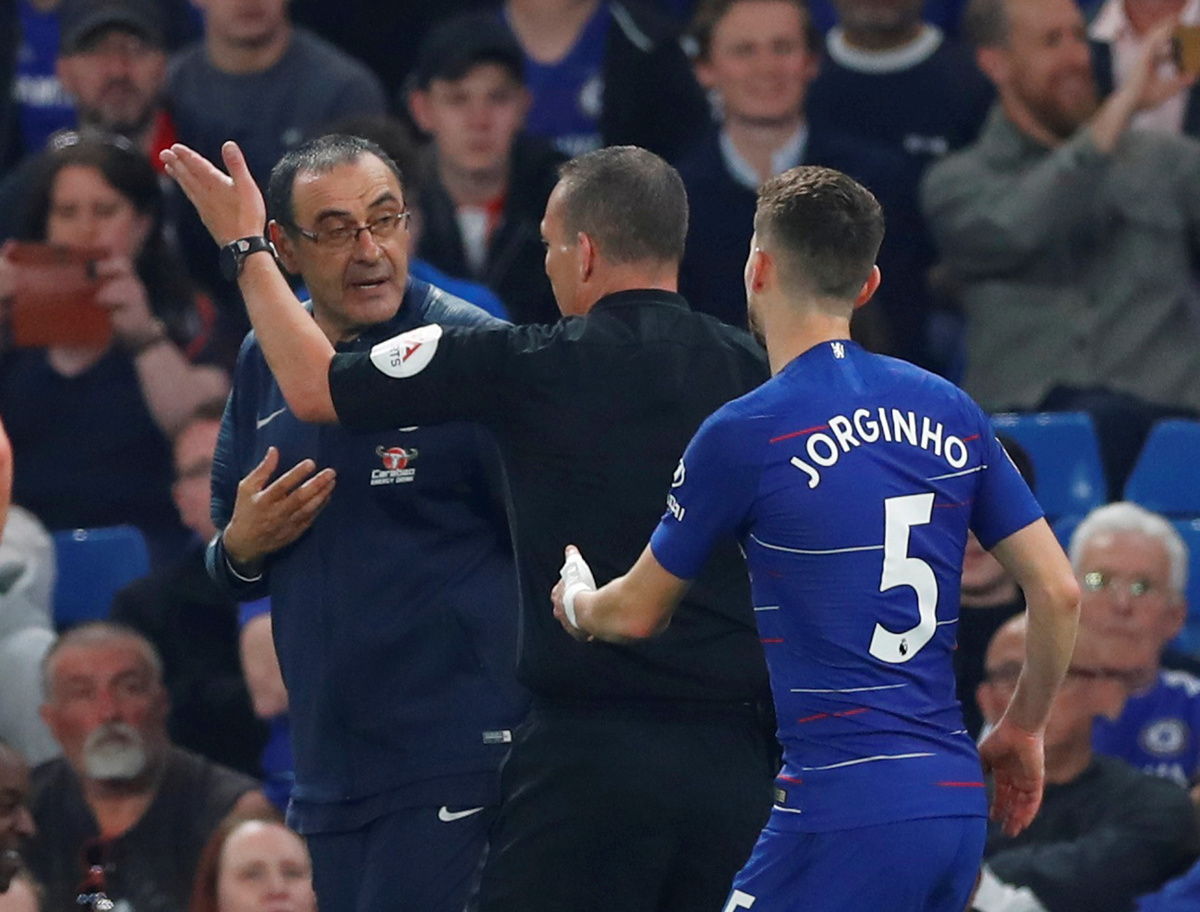 LONDON (Reuters) - Chelsea manager Maurizio Sarri has been fined £8,000 by the Football Association after accepting a misconduct charge from Monday's 2-2 Premier League draw against Burnley.